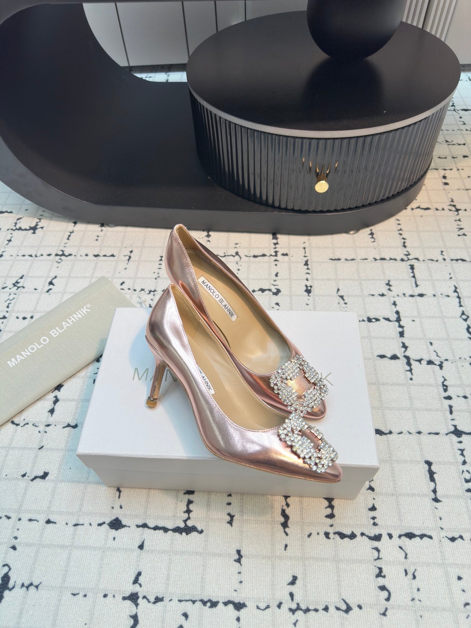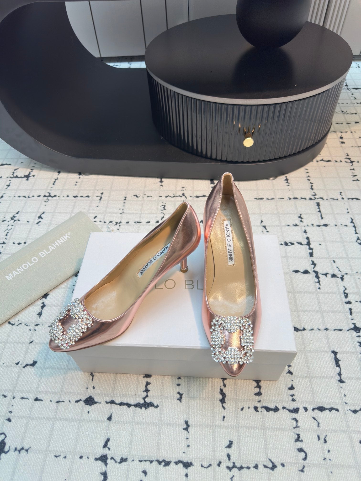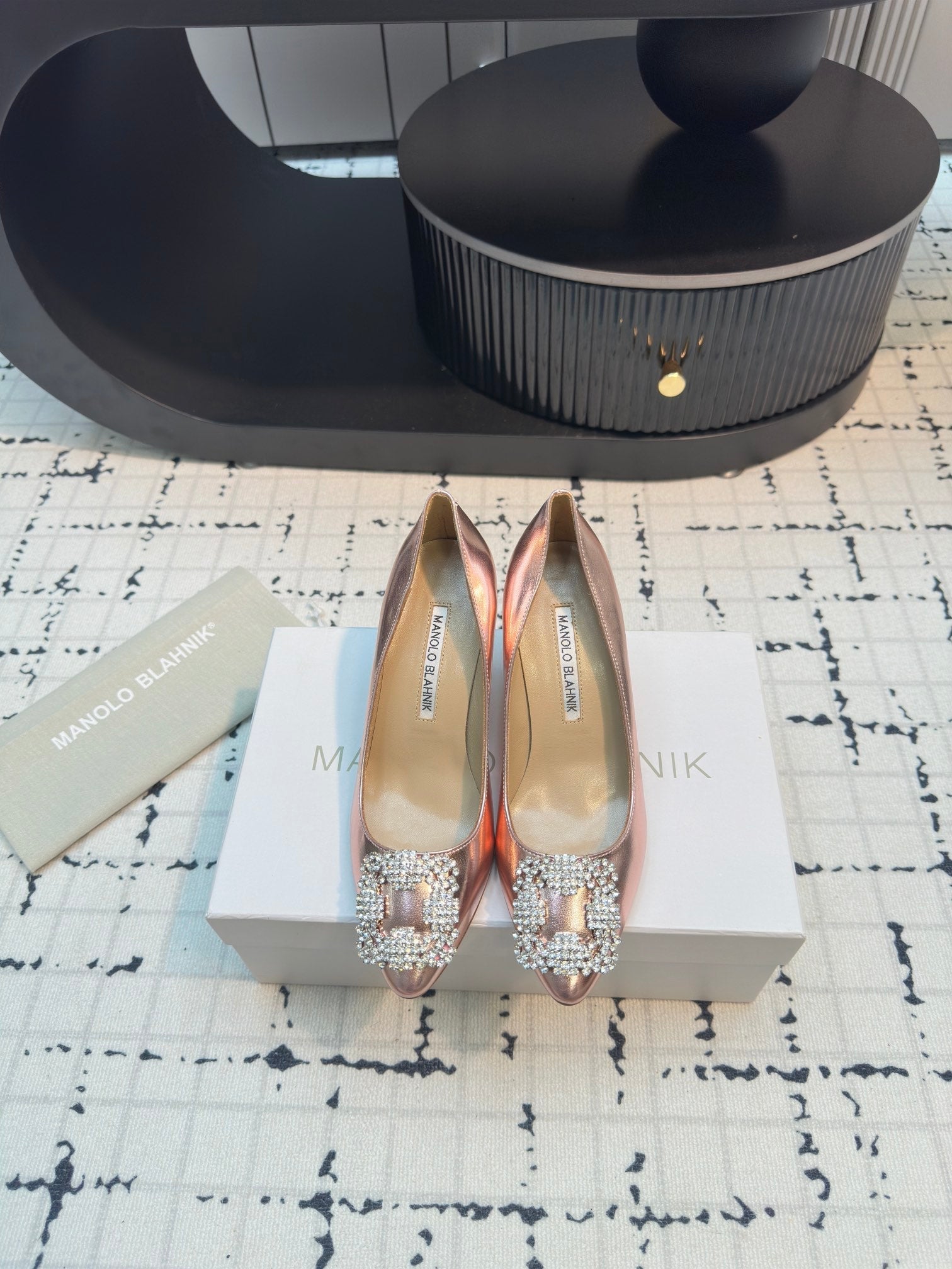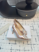 Hangisi 70 Rose Gold Metallic Leather Jewel Buckle Pumps 912618
