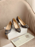 Hangisi Taupe Satin Crystal Embellished Pumps 700528