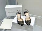 Manolo Buckle Slingback 7cm Black Silk 208027