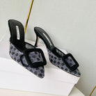 Manolo Mules Latest Checkerboard Grey Fabric Leather 528009