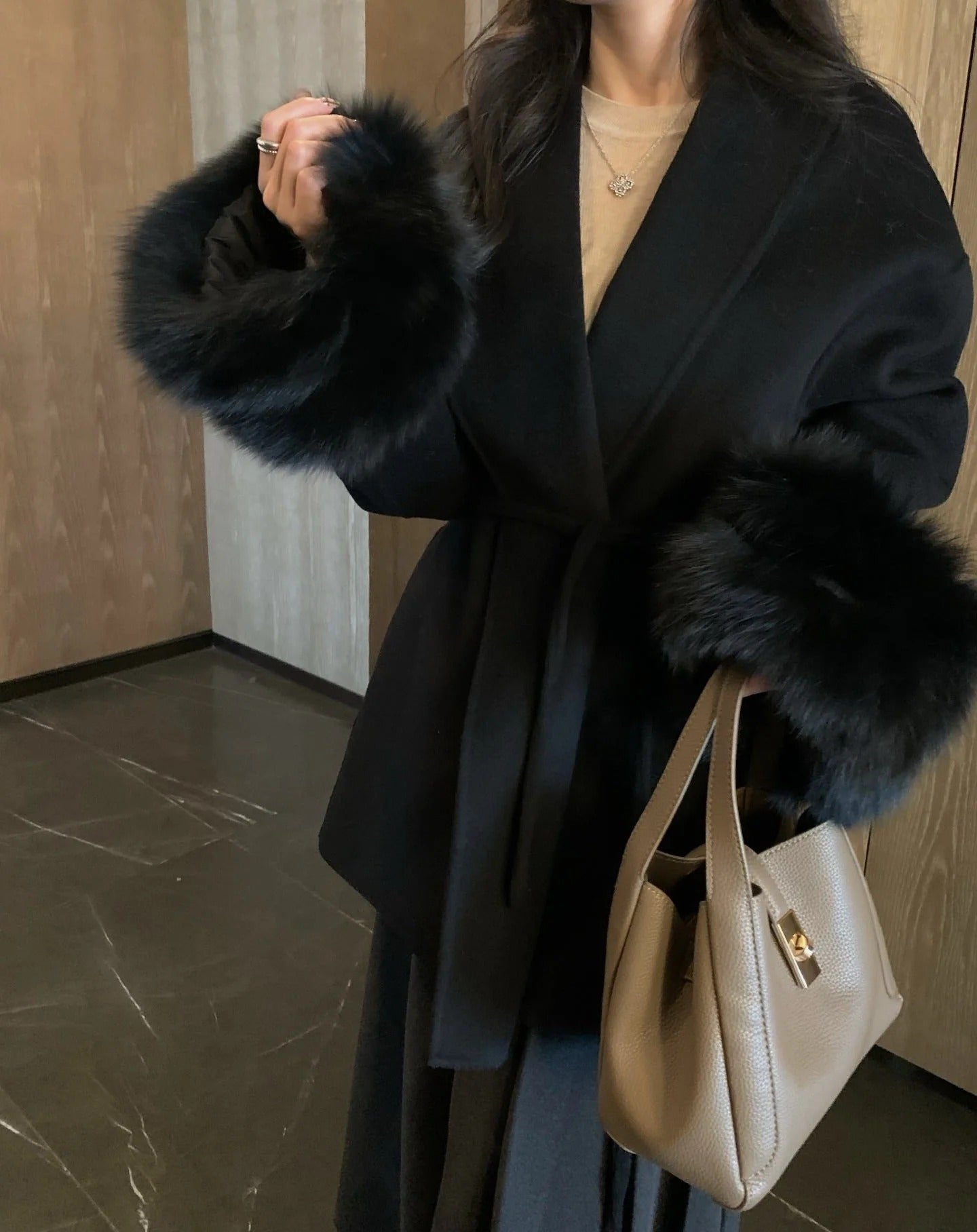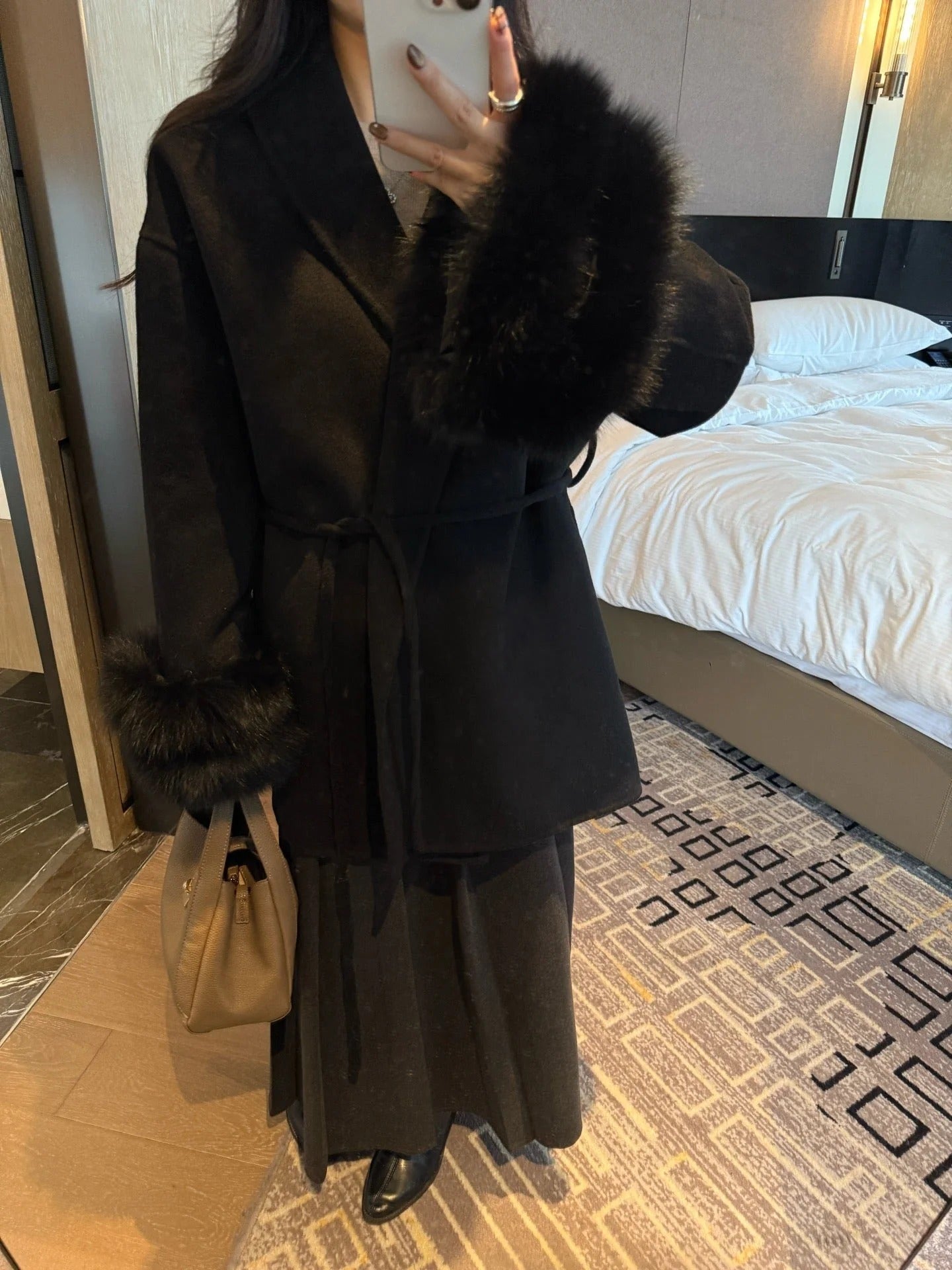 MAX MARA 25S CASHMERE COAT WITH FOX FUR TRIM 203