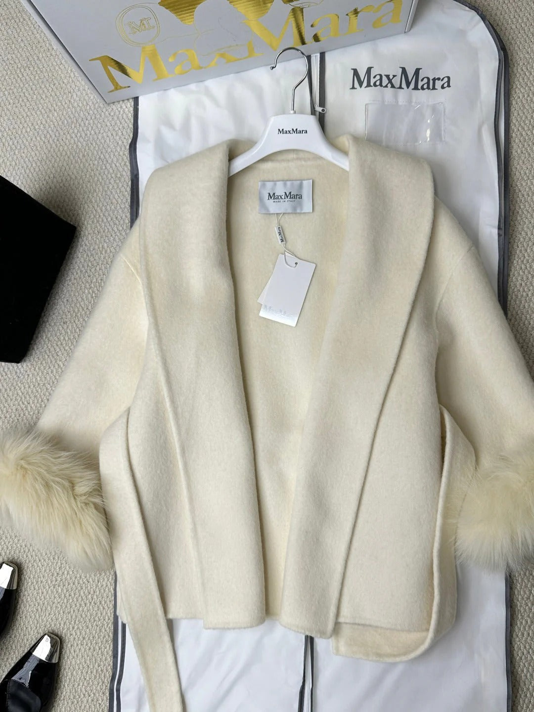MAX MARA 25S CASHMERE COAT WITH FOX FUR TRIM 235