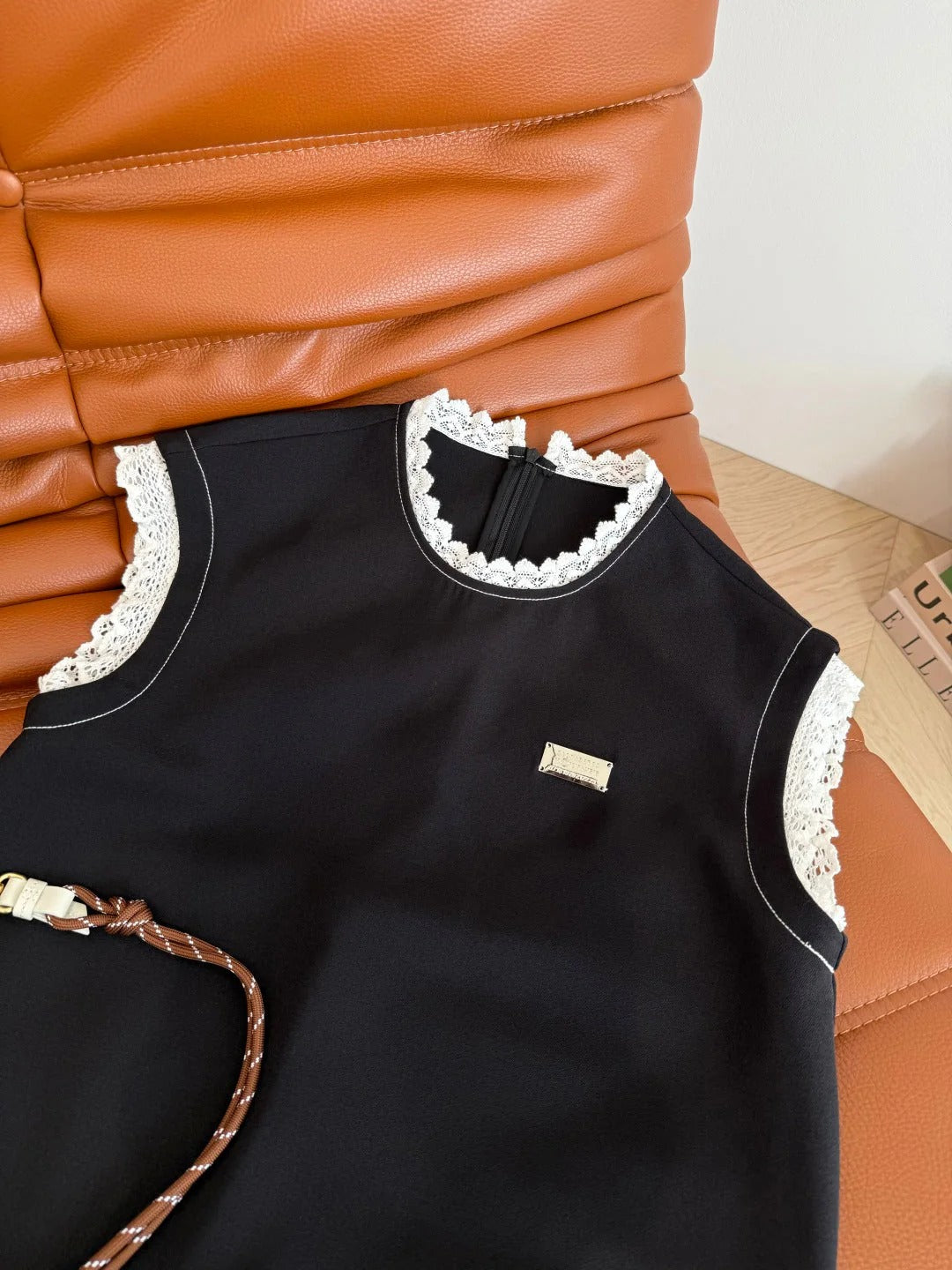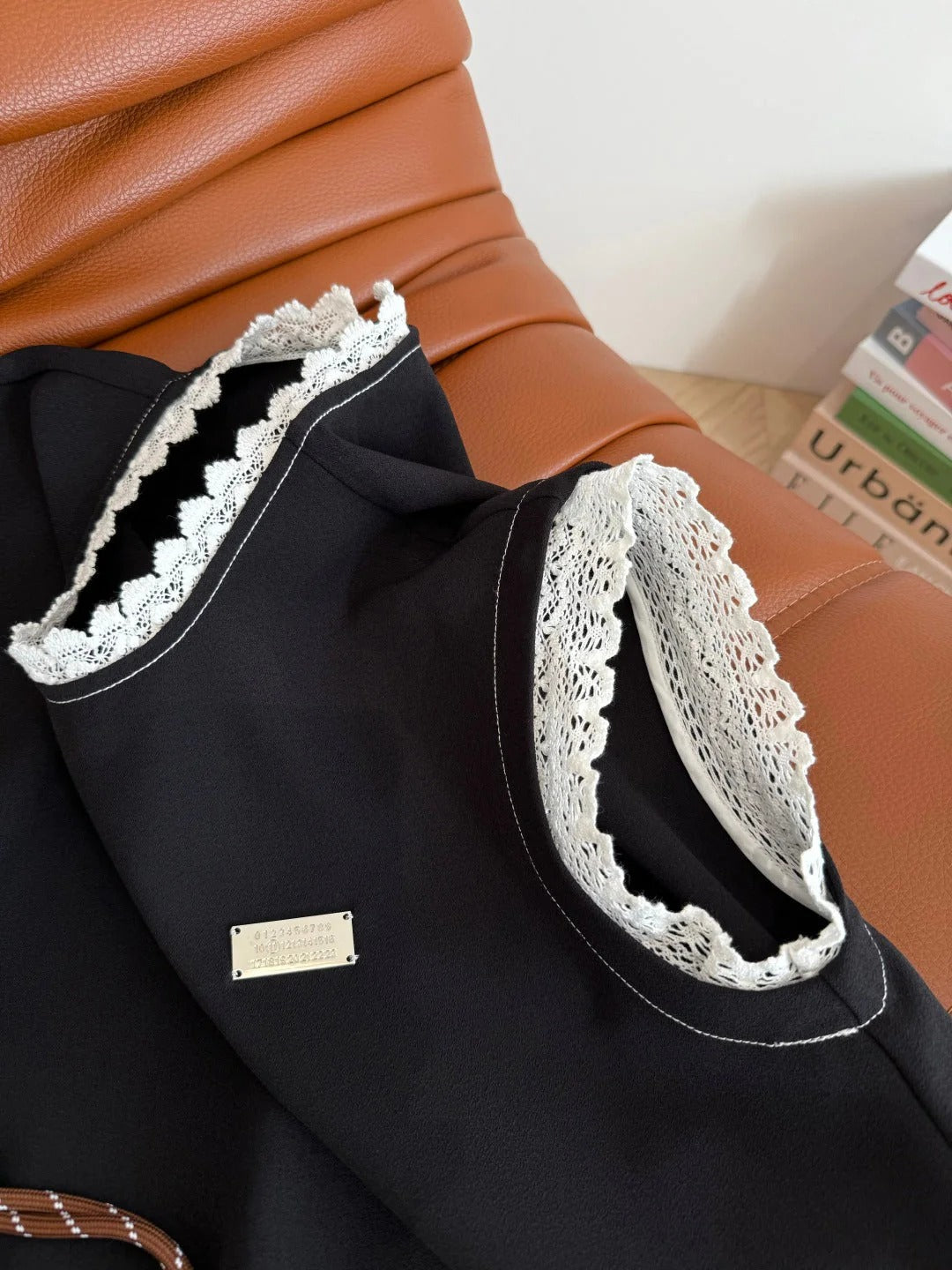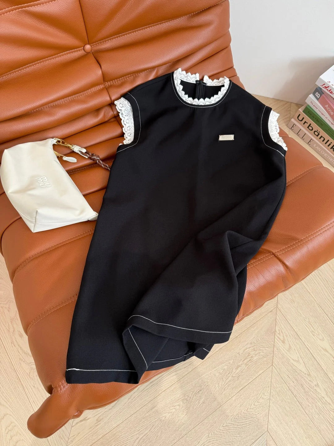 LACE-EMBROIDERED 25S BROAD-SHOULDER DRESS 265767