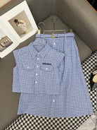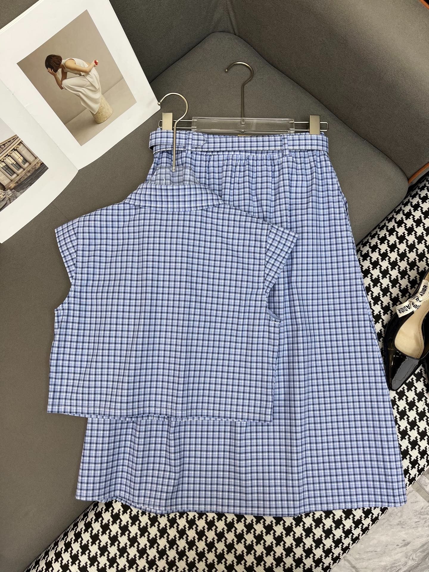 MATCHING SET WITH TOP AND BLUE PLAID MINI SKIRT