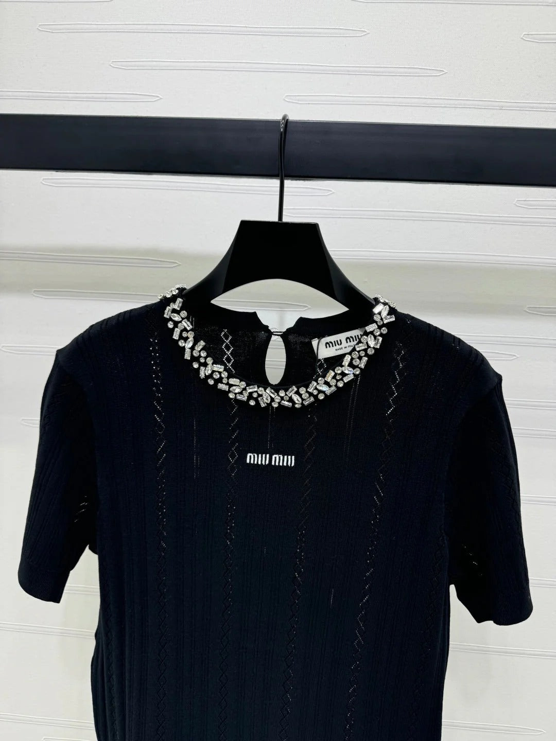MIU 25S RHINESTONE COLLAR T-SHIRT 264097