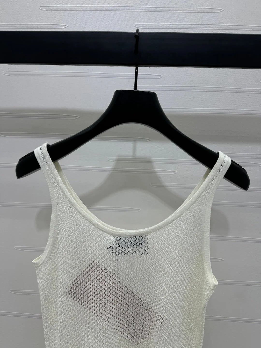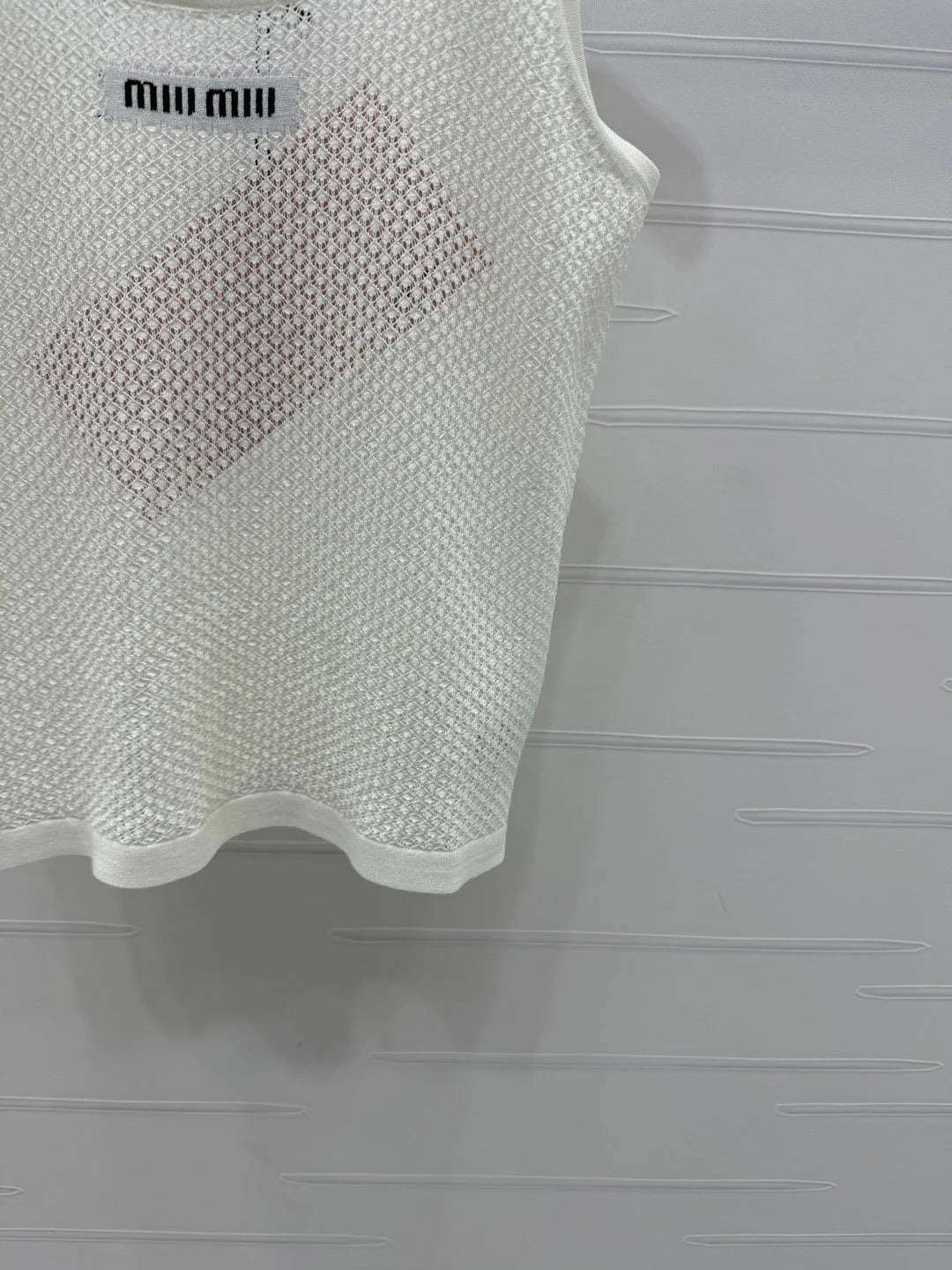 MIU 25S ROUND NECK KNIT TANK TOP WITH HOLES 264266