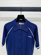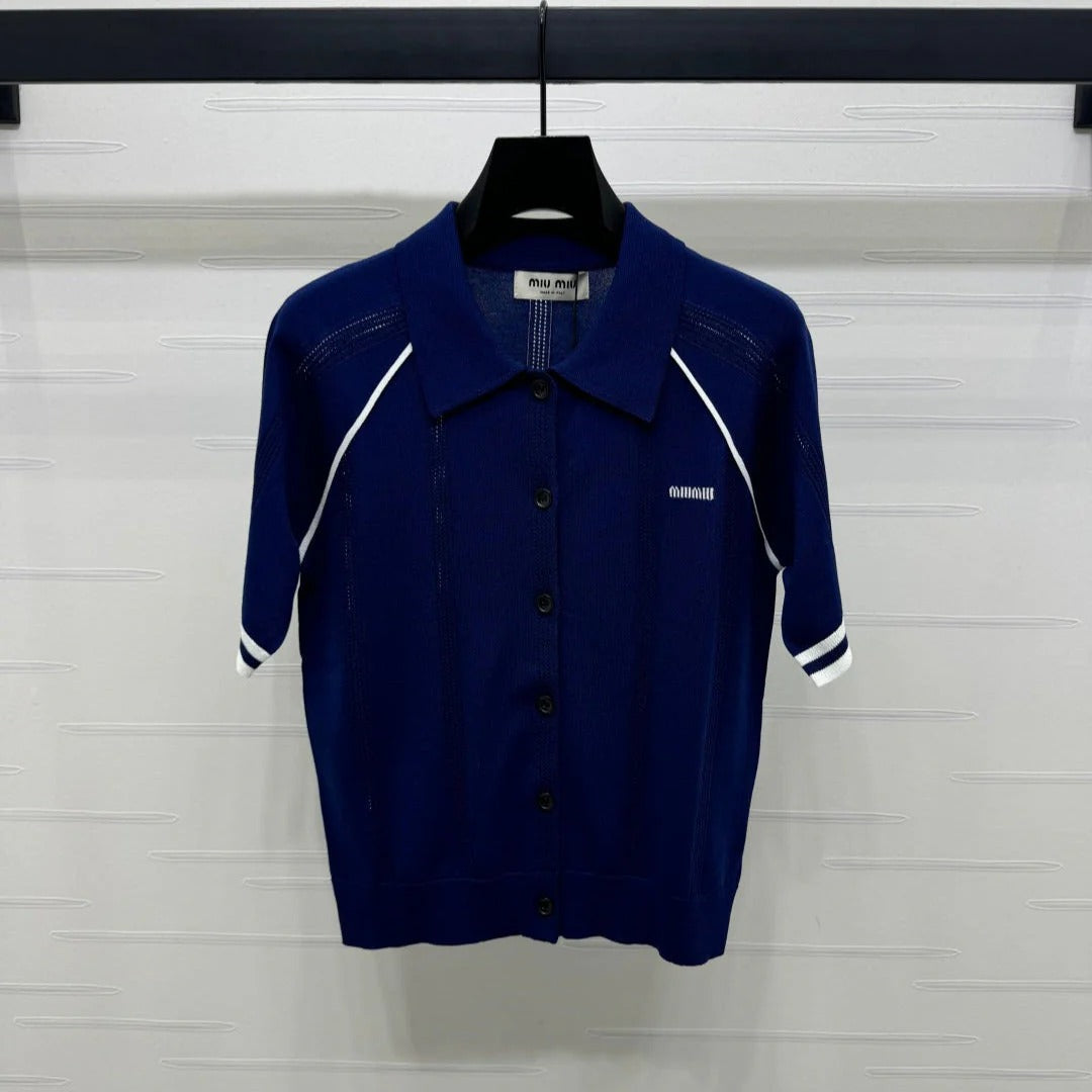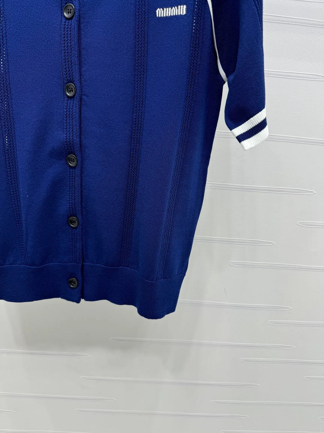 MIU 25S ROUND NECK STRIPED KNIT RAGLAN SHORT SLEEVES 264109