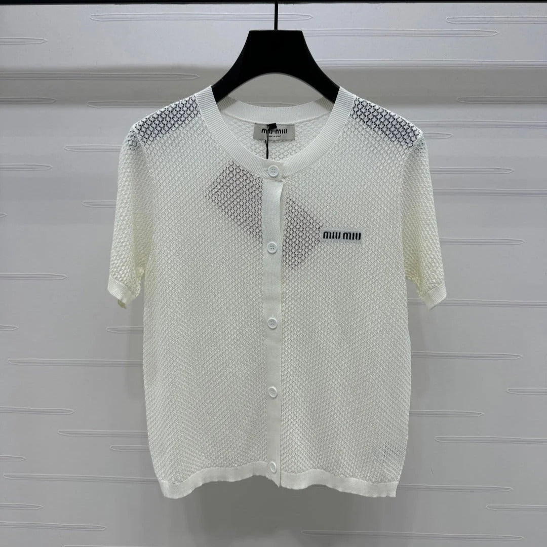 MIU 25S SHORT SLEEVE ROUND NECK CARDIGAN 264268