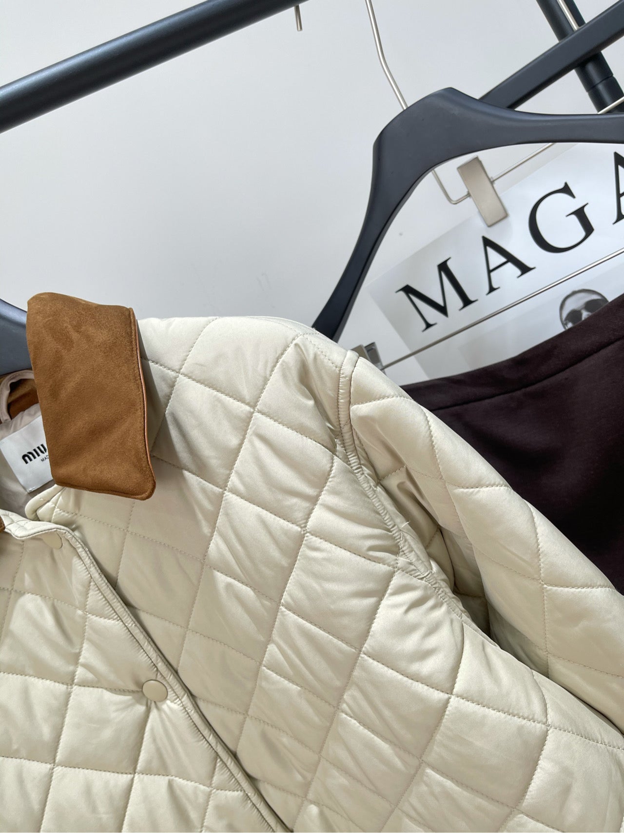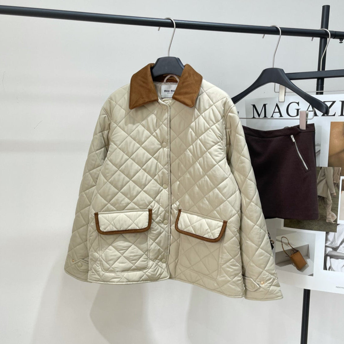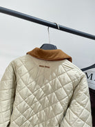 Miu Miu 25 Apricot Brown Plaid Quilted Jacket 296673