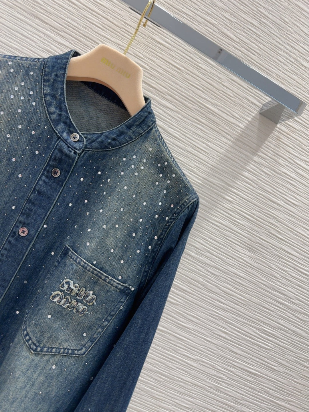 Miu Miu 25 Denim Shirt Blue Cotton Polyester