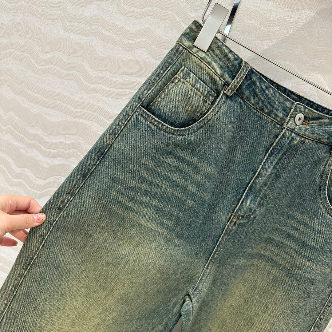 Miu Miu 25 Denim Sickle Pants Blue Cotton