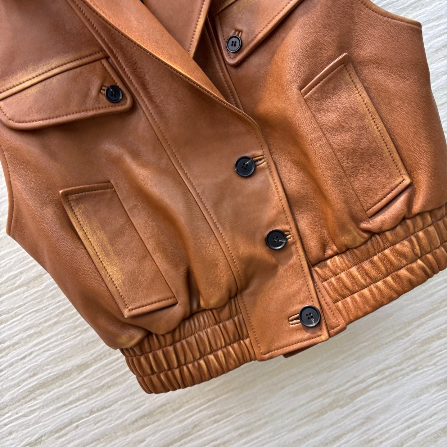 Miu Miu 25 Leather Vest Jacket Brown Lambskin