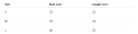 - For more information, please see the size guide below