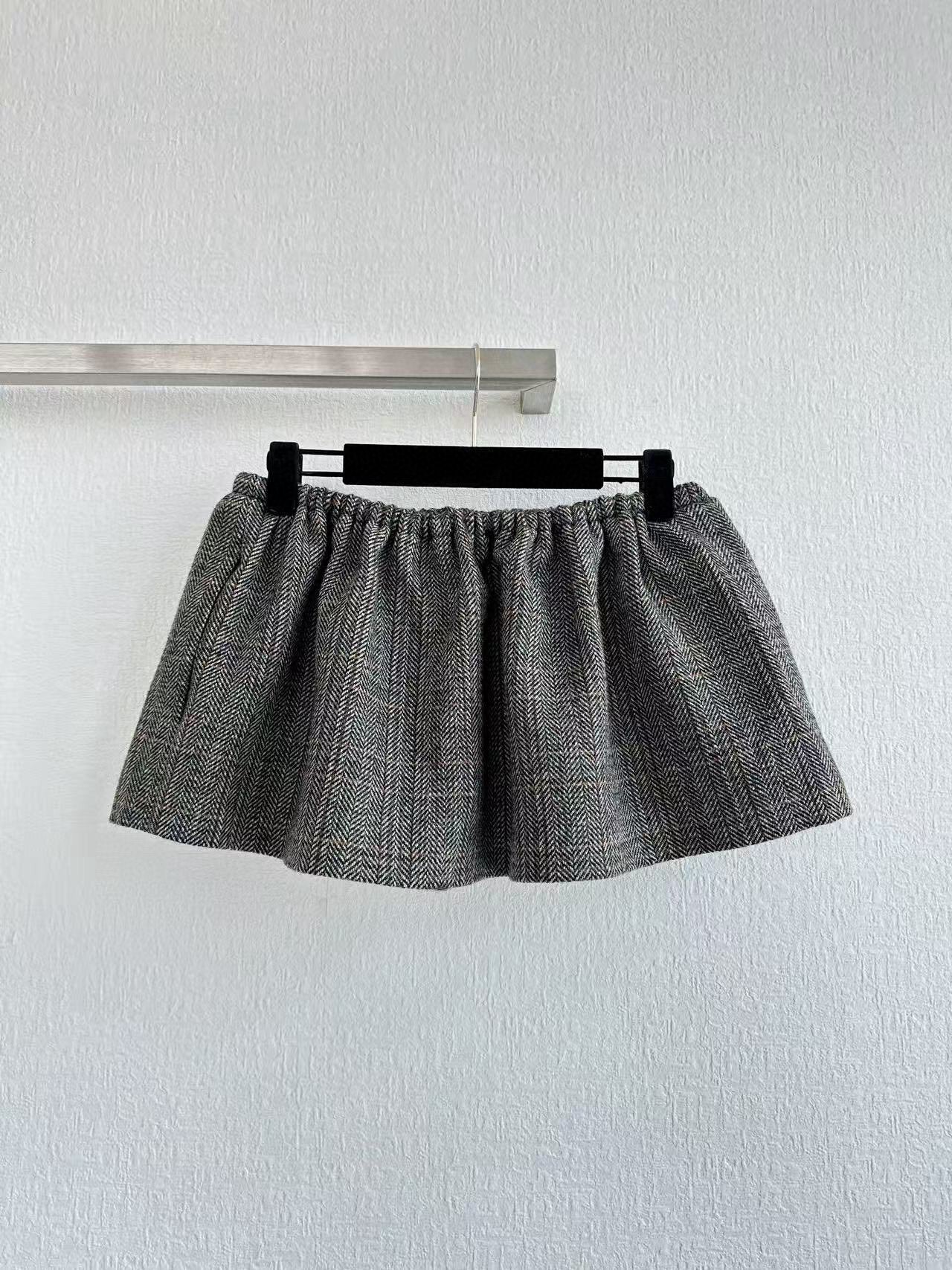 Miu Miu 25 Patterned Rope Skirt Gray Wool Viscose