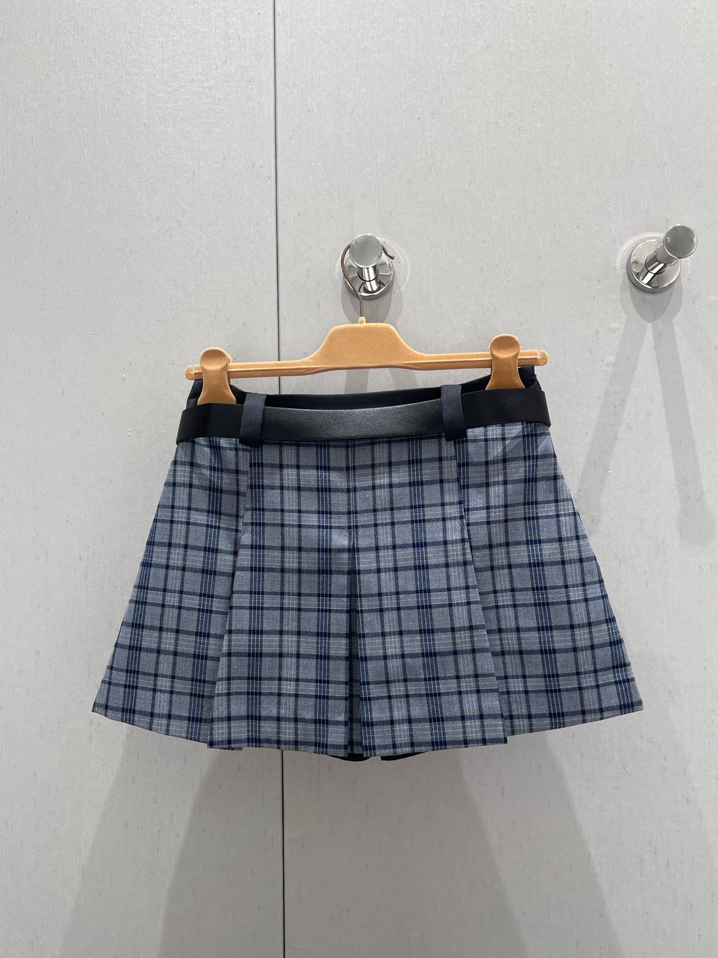Miu Miu 25 Plaid Pleated Skirt Blue Polyester 211200