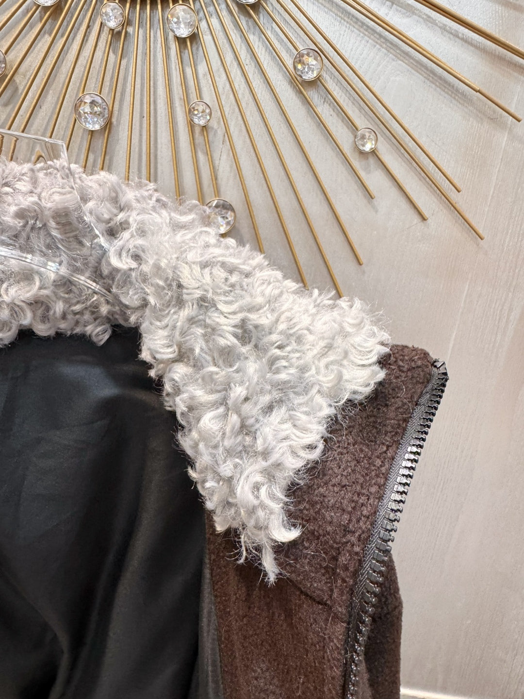 Miu Miu 25 Polar Fleece Down Jacket Chocolate Brown Polyester Wool 90880890