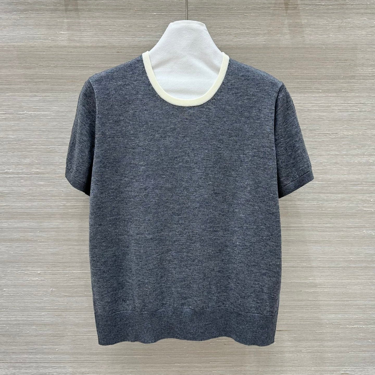 Miu Miu 25 Short-sleeve Top Gray Wool