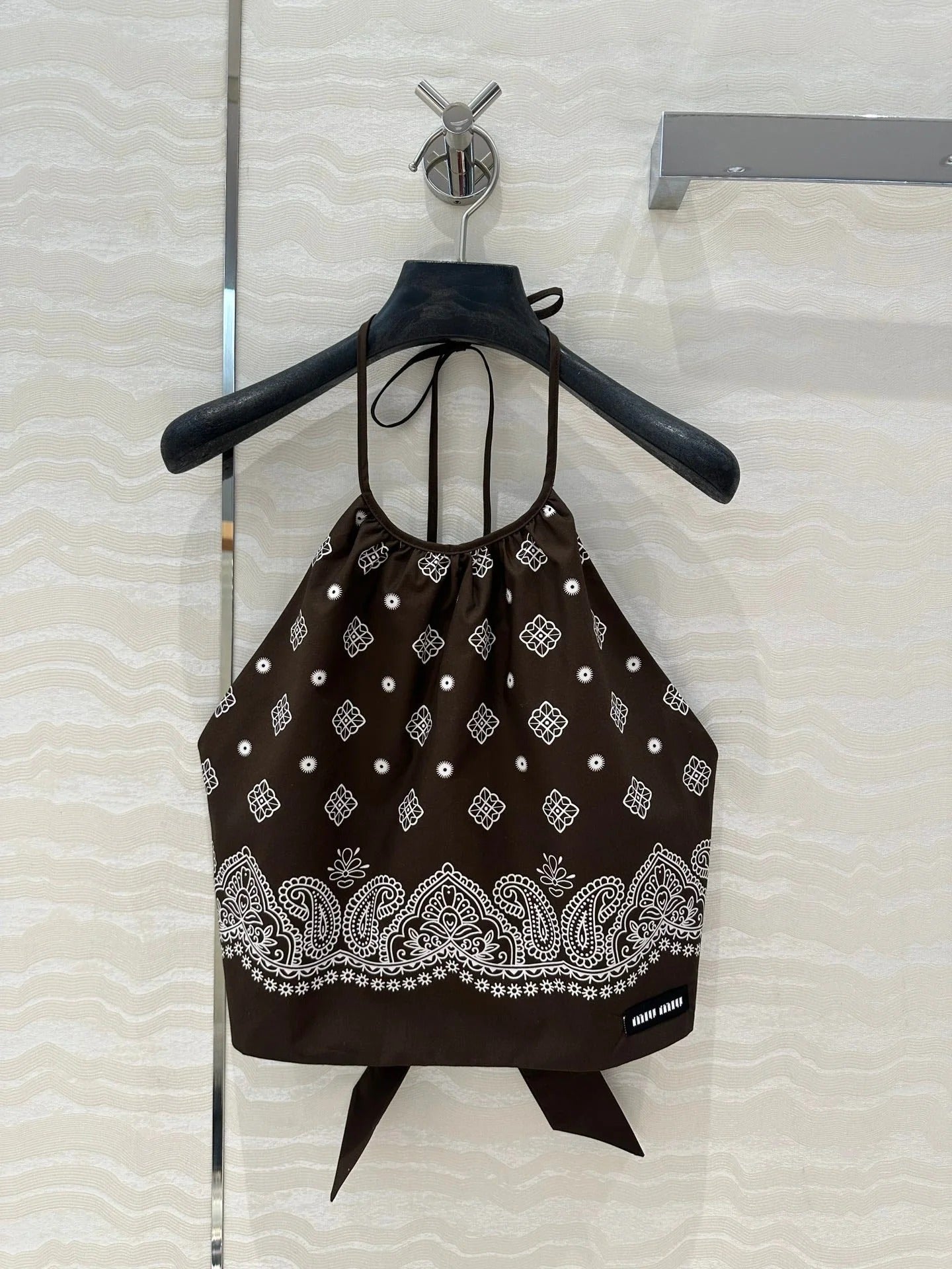 MIUMIU EARTH BROWN STRAPPY BACK TOP
