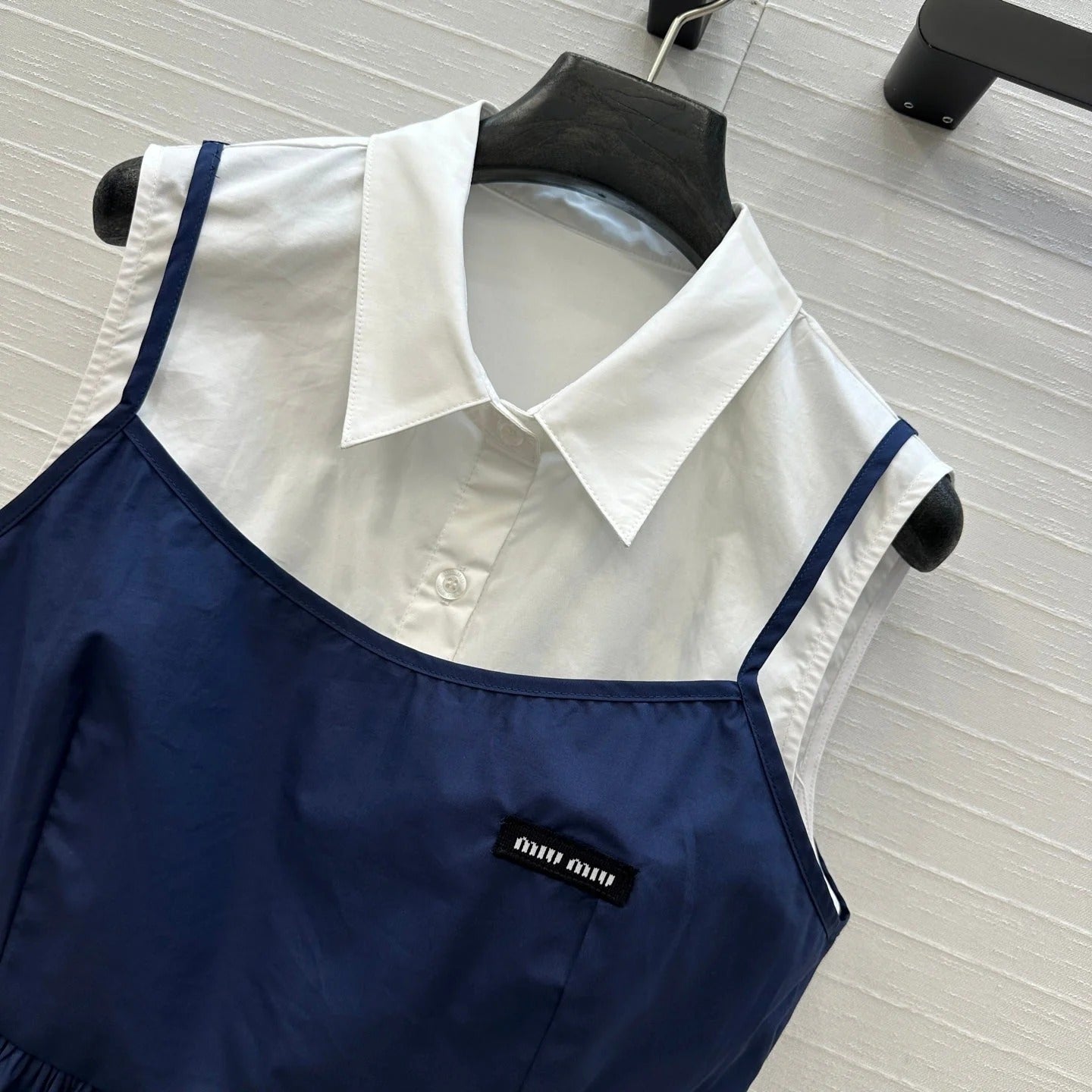 MIUMIU FAUX TWO-PIECE DRESS WITH STRAPS 268351