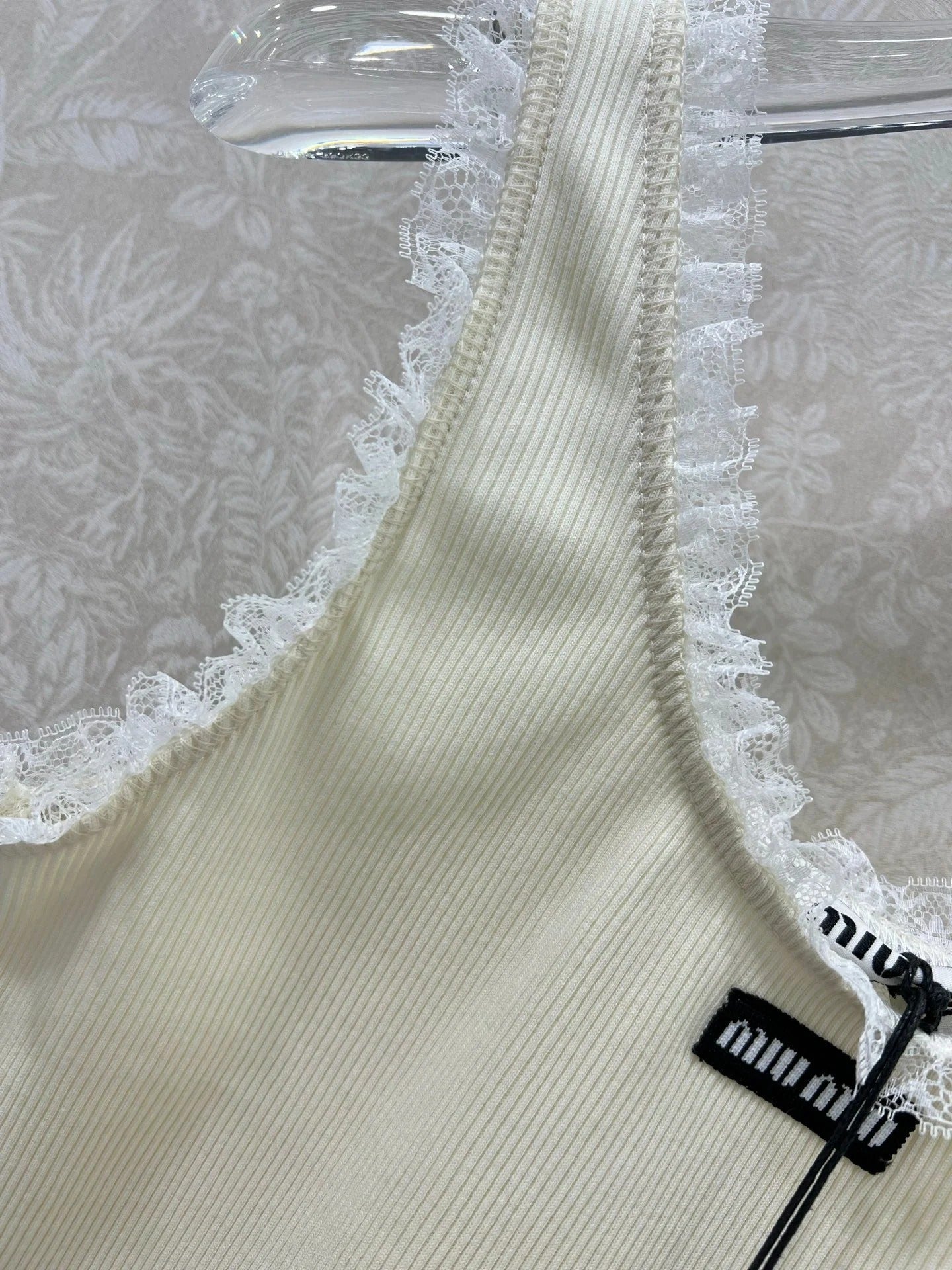 MIUMIU KNIT TANK TOP WITH RUFFLED TRIM 275104