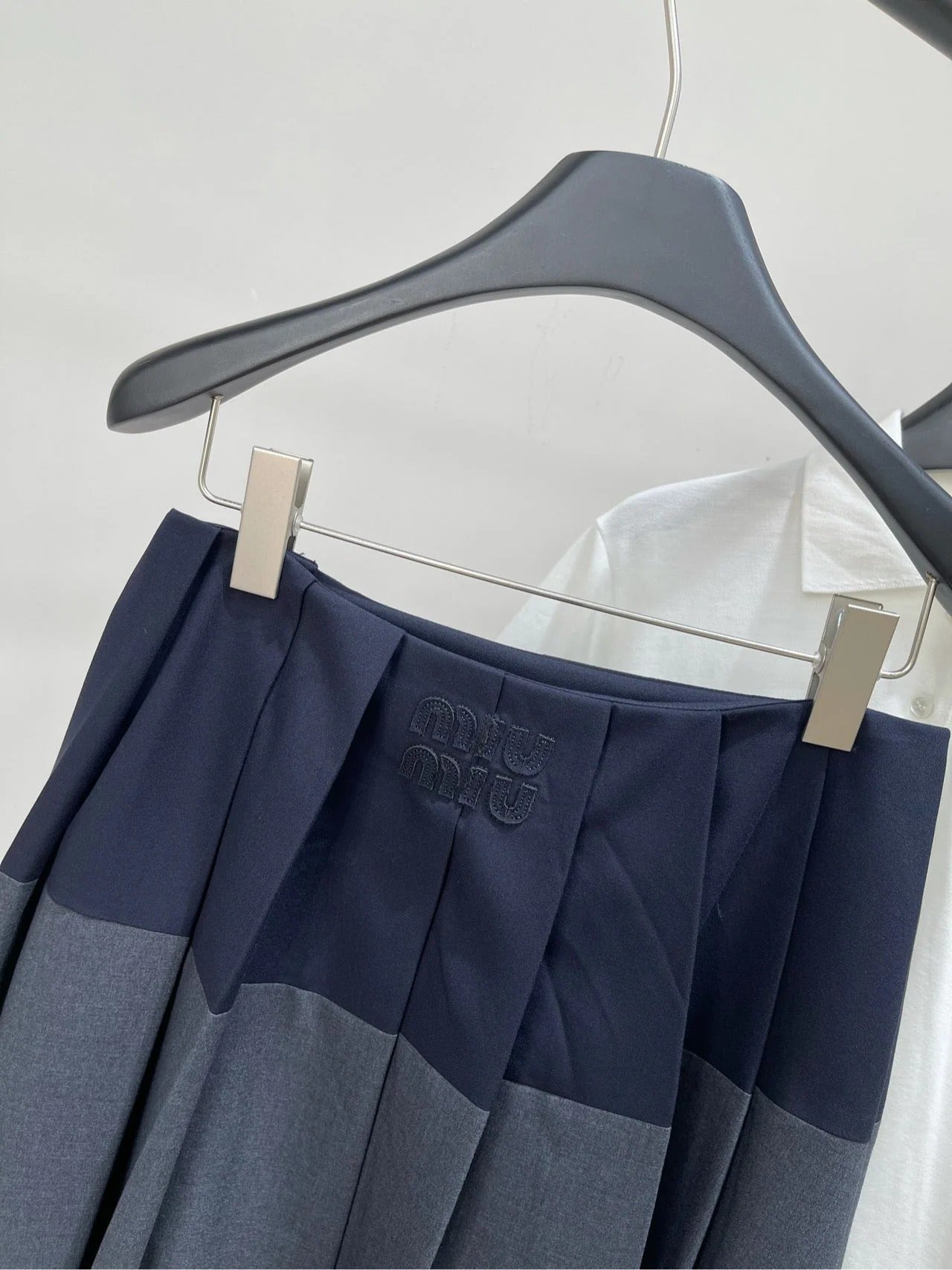 MIUMIU PLEATED LOW-BACK SIDE-SLIT MIDI SKIRT 275985