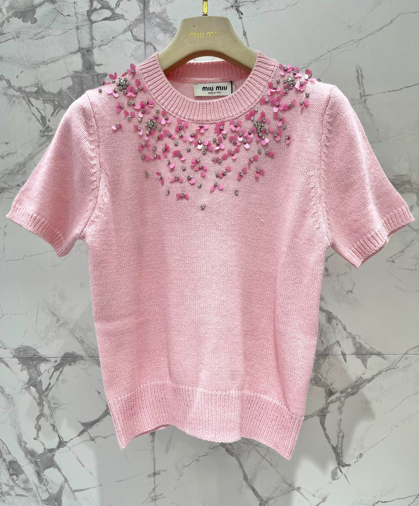 MIUMIU SHORT-SLEEVE KNIT TOP STYLE 298