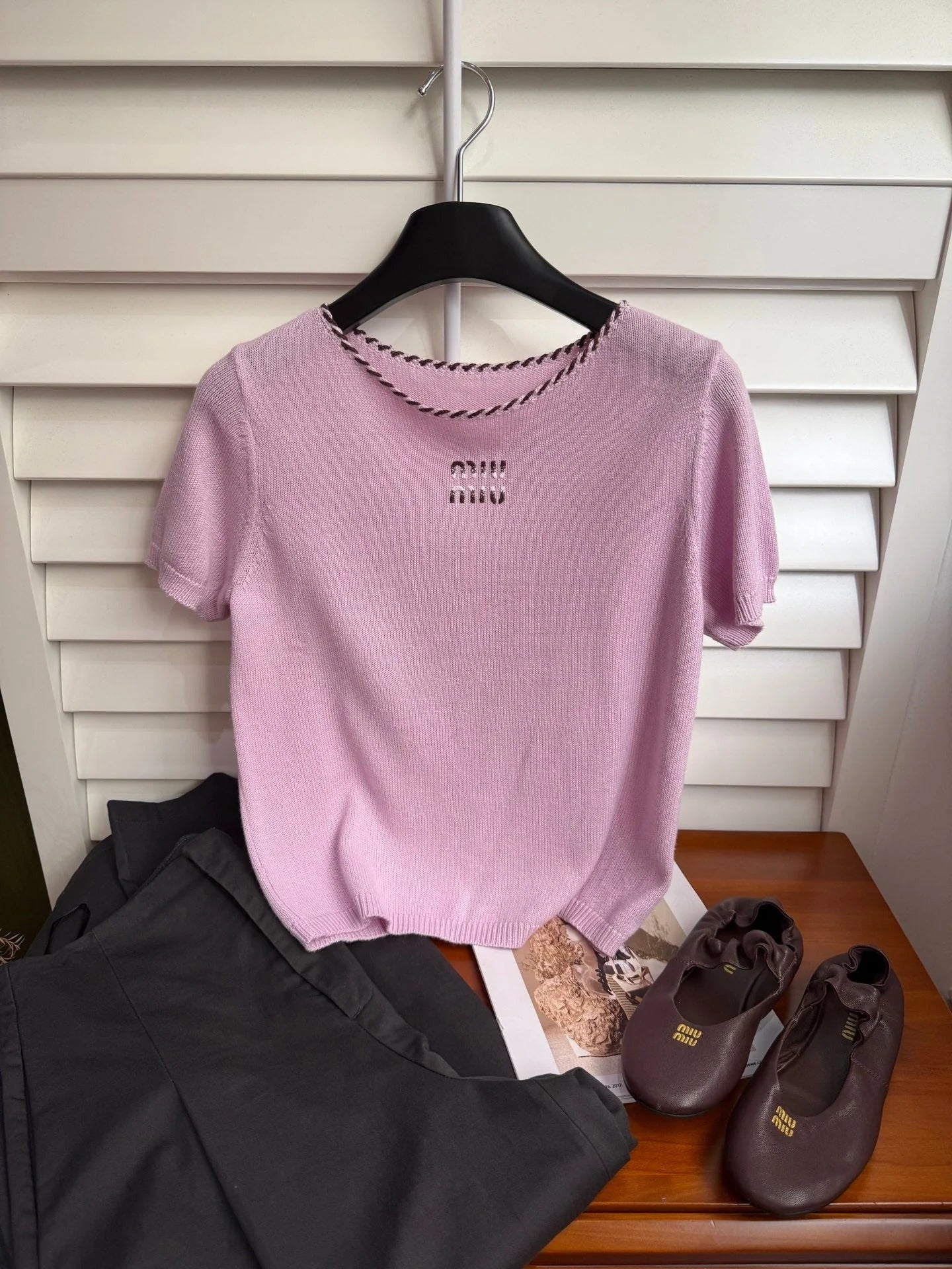 MIUMIU SHORT-SLEEVE KNIT TOP STYLE 347