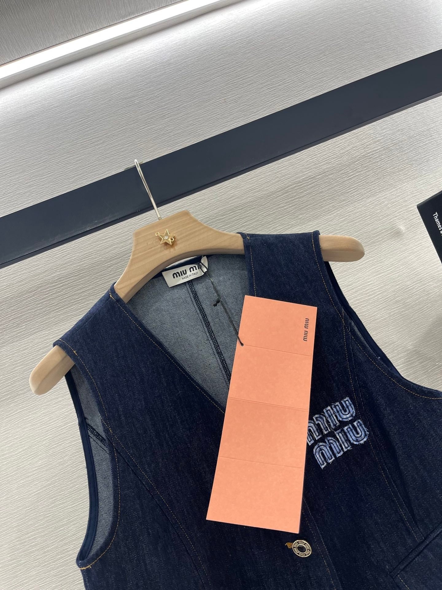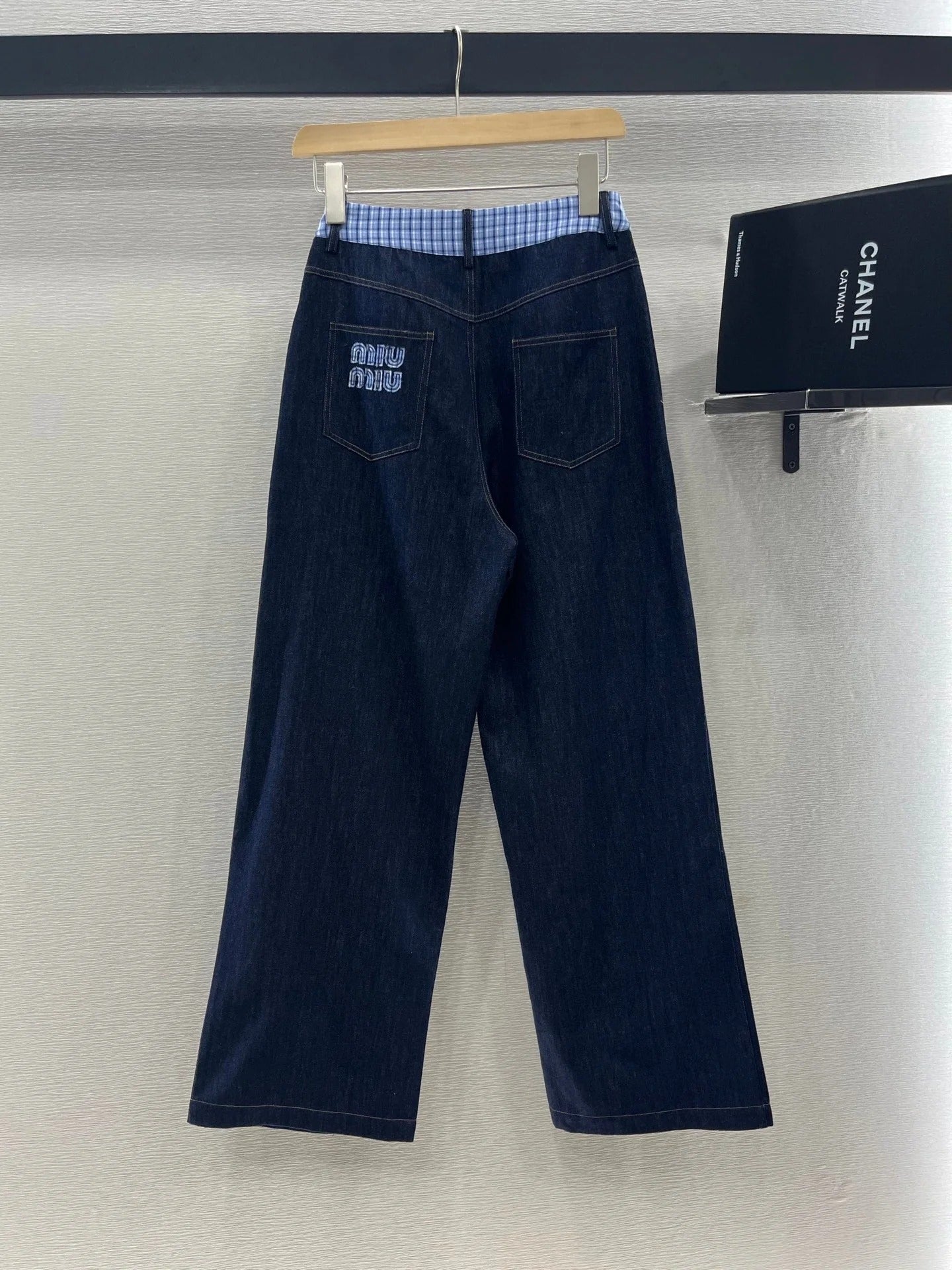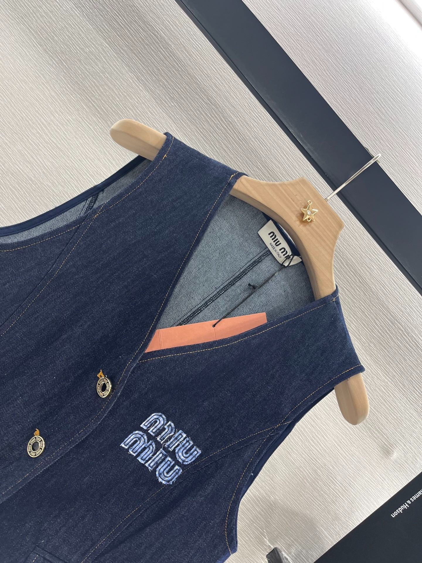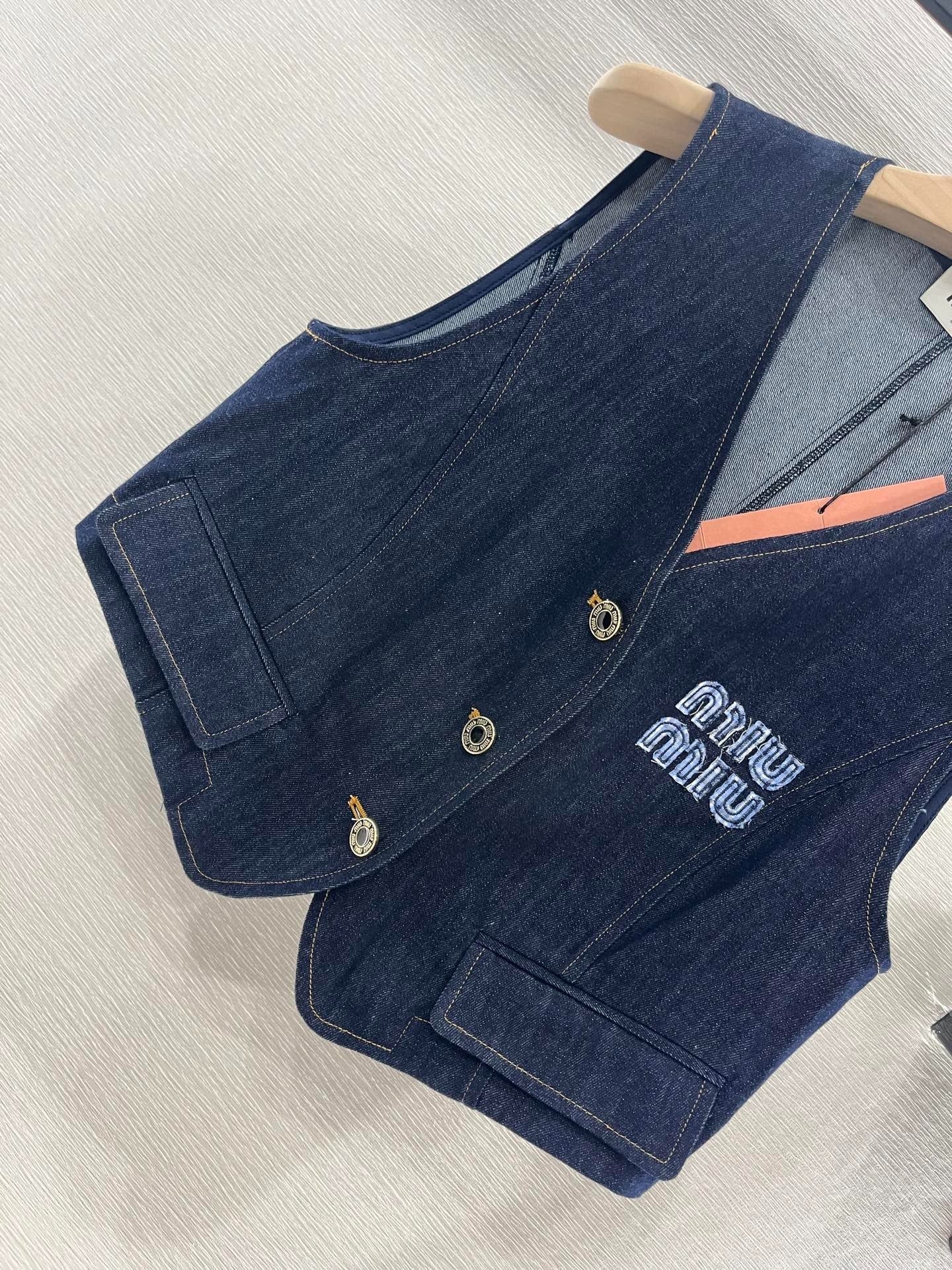 MIUMIU V-NECK BLAZER AND WIDE-LEG PANTS IN BLUE DENIM