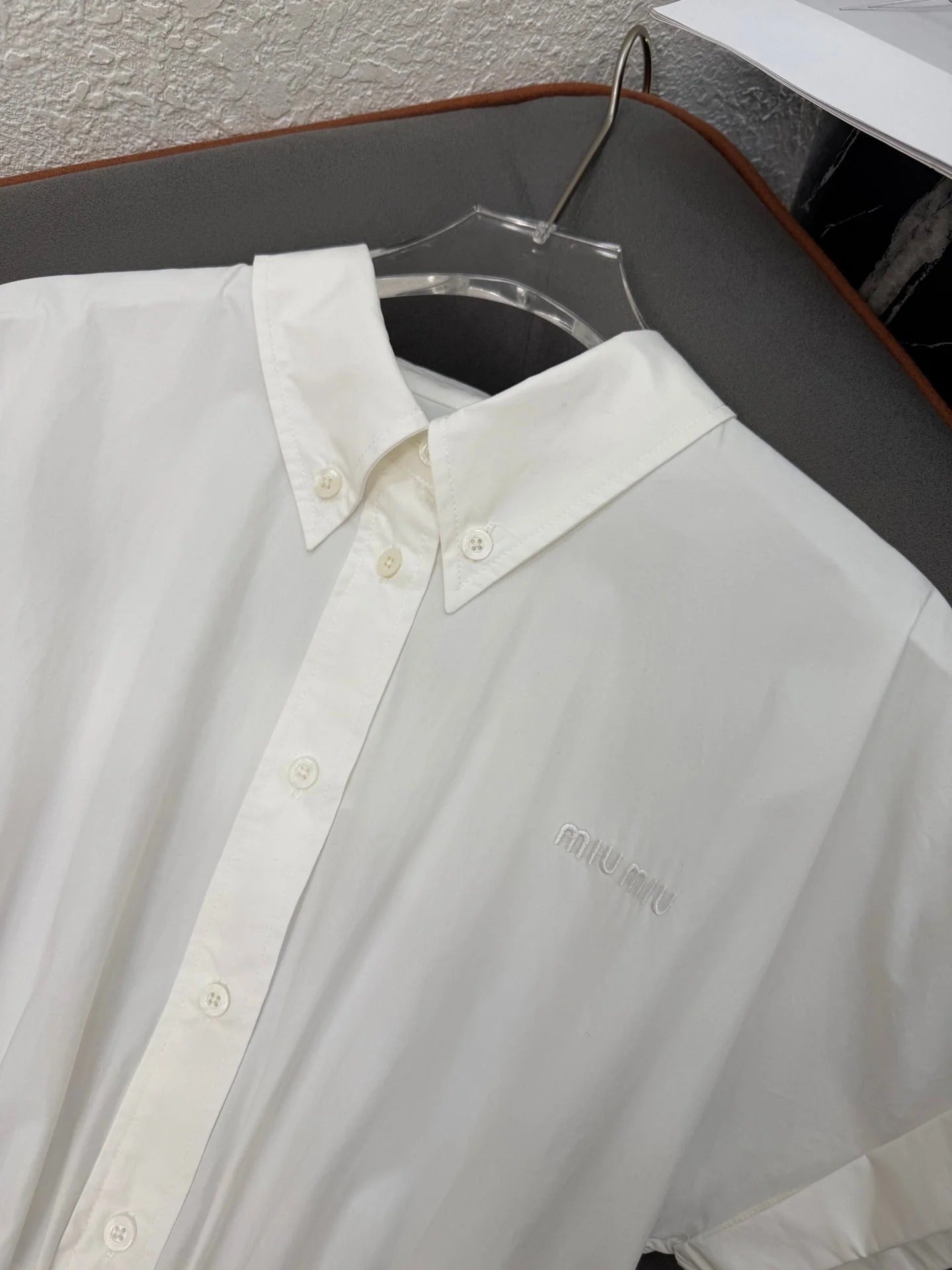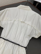MM LONG DRESS IN WHITE TEXTURED FABRIC WITH BELT