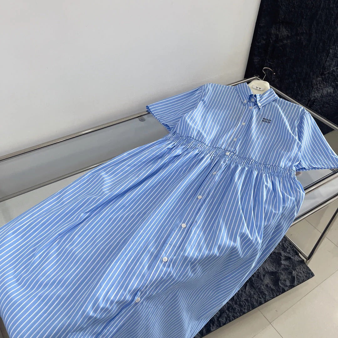 STRIPED SHORT-SLEEVE SHIRT DRESS IN COTTON 265843