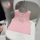 VISCOSE TANK TOP 643229 IN PINK COTTON RIBBED KNIT WITH EMBELLISHED LOGO