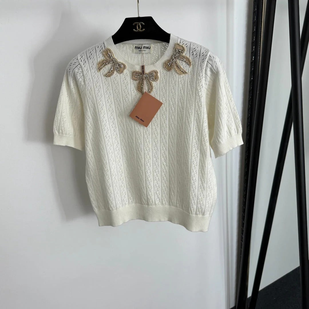 MIUMIU SHORT-SLEEVE KNIT TOP STYLE 423