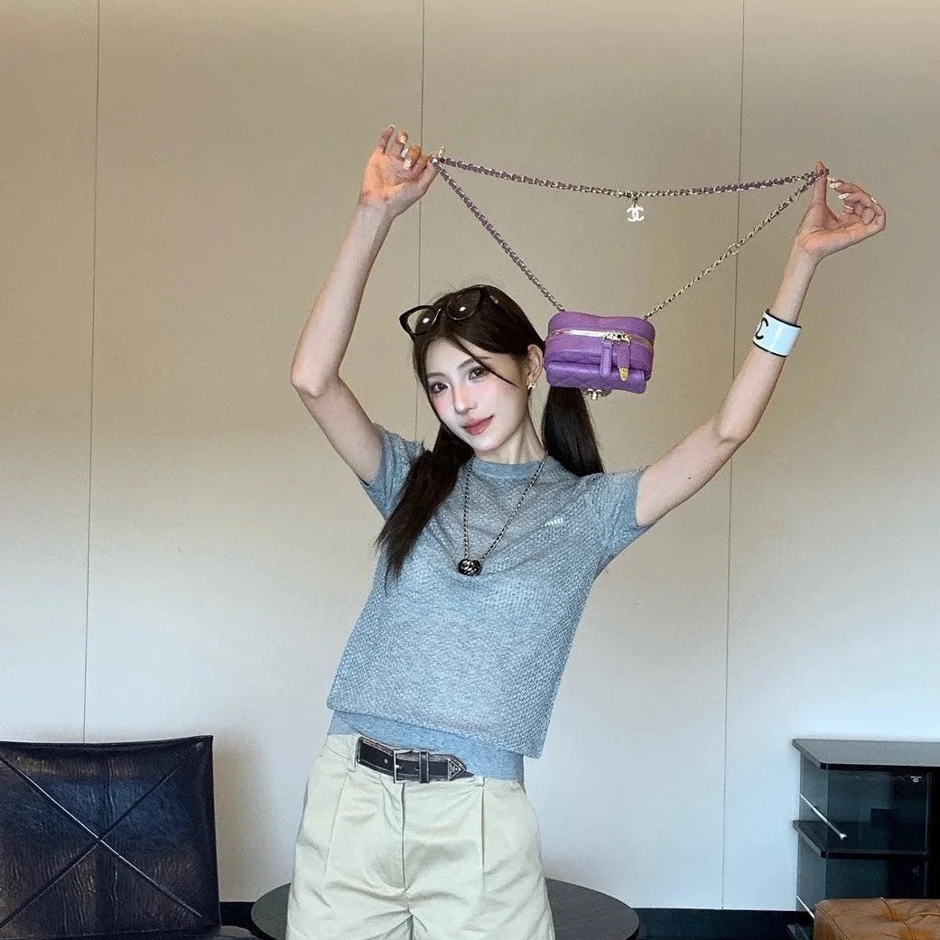 MIUMIU SHORT-SLEEVE KNIT TOP STYLE 409