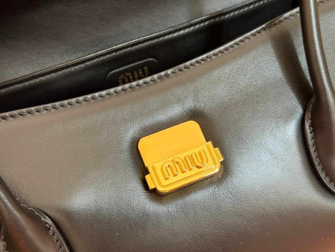 BEAU TOP HANDLE BAG 28 IN BLACK GLOSSY CALFSKIN GOLD HARDWARE