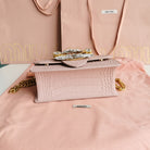 LADY 20 HANDBAG IN CROCODILE PATTERN PINK PASTEL CALFSKIN