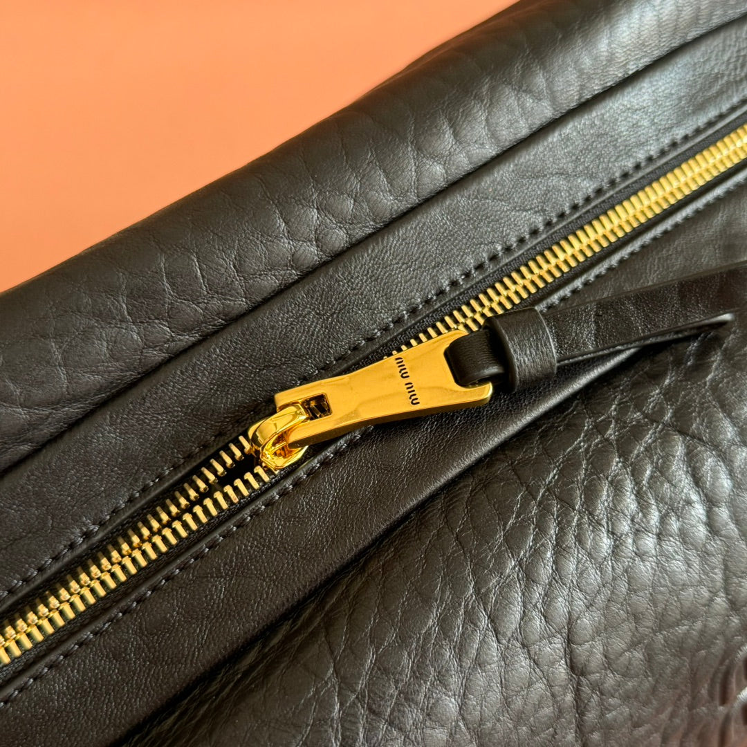 Miu 25ss Large Shoulderbag 40 Black Embossed Lambskin