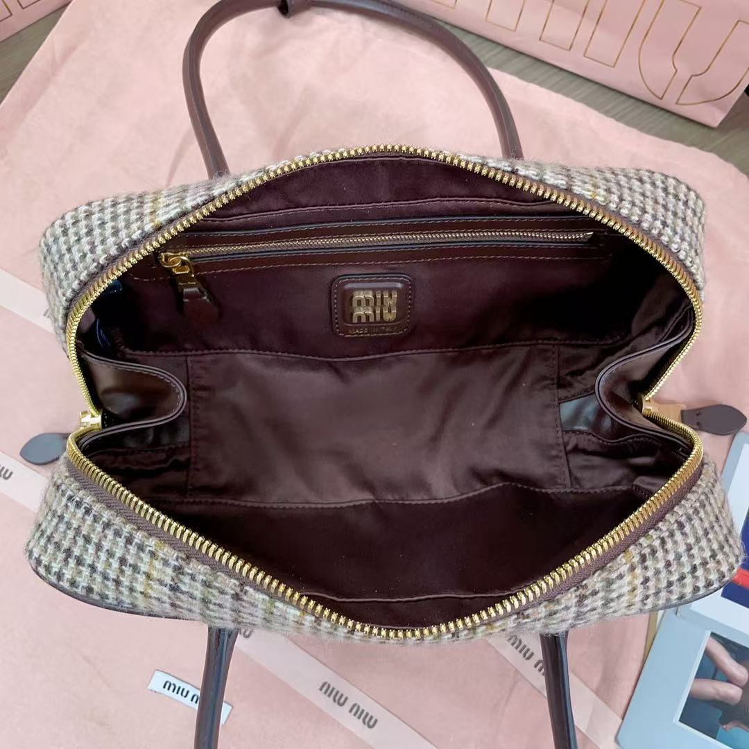 Miu 5BB147 Handbag 28cm Brown Beige Tweed