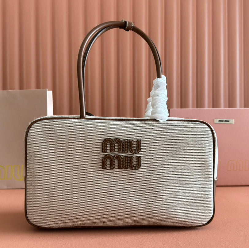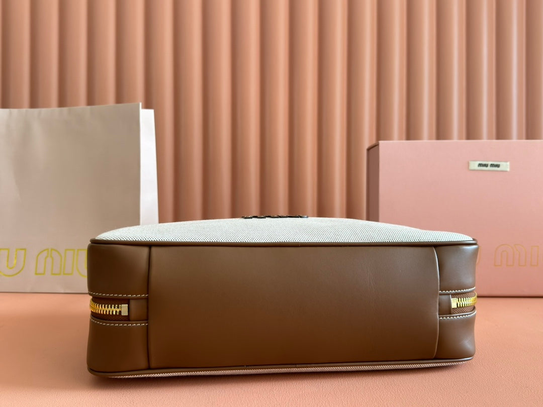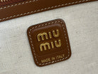 Miu Beau Medium Bag 34cm Soft Beige Cotton Brown Cowhide 257973