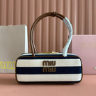 Miu Beau Small Bag 28cm Soft Beige Mix Dark Navy Blue Brown Cotton Cowhide 257951