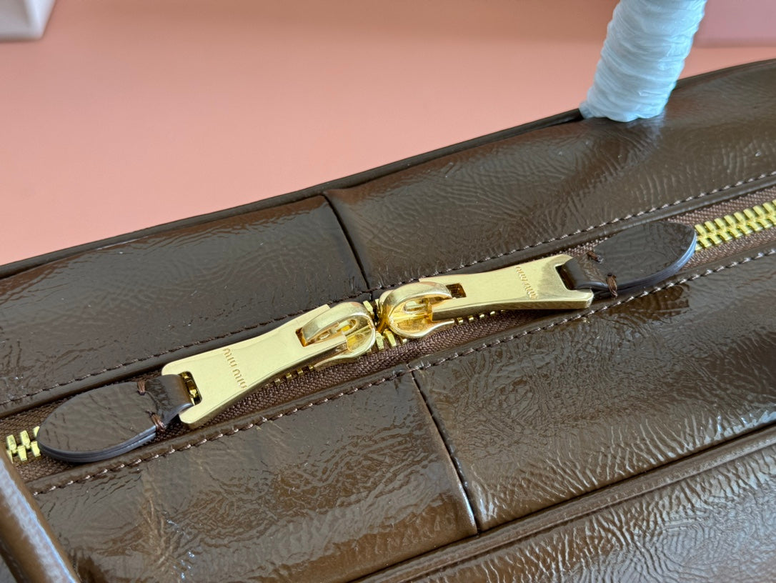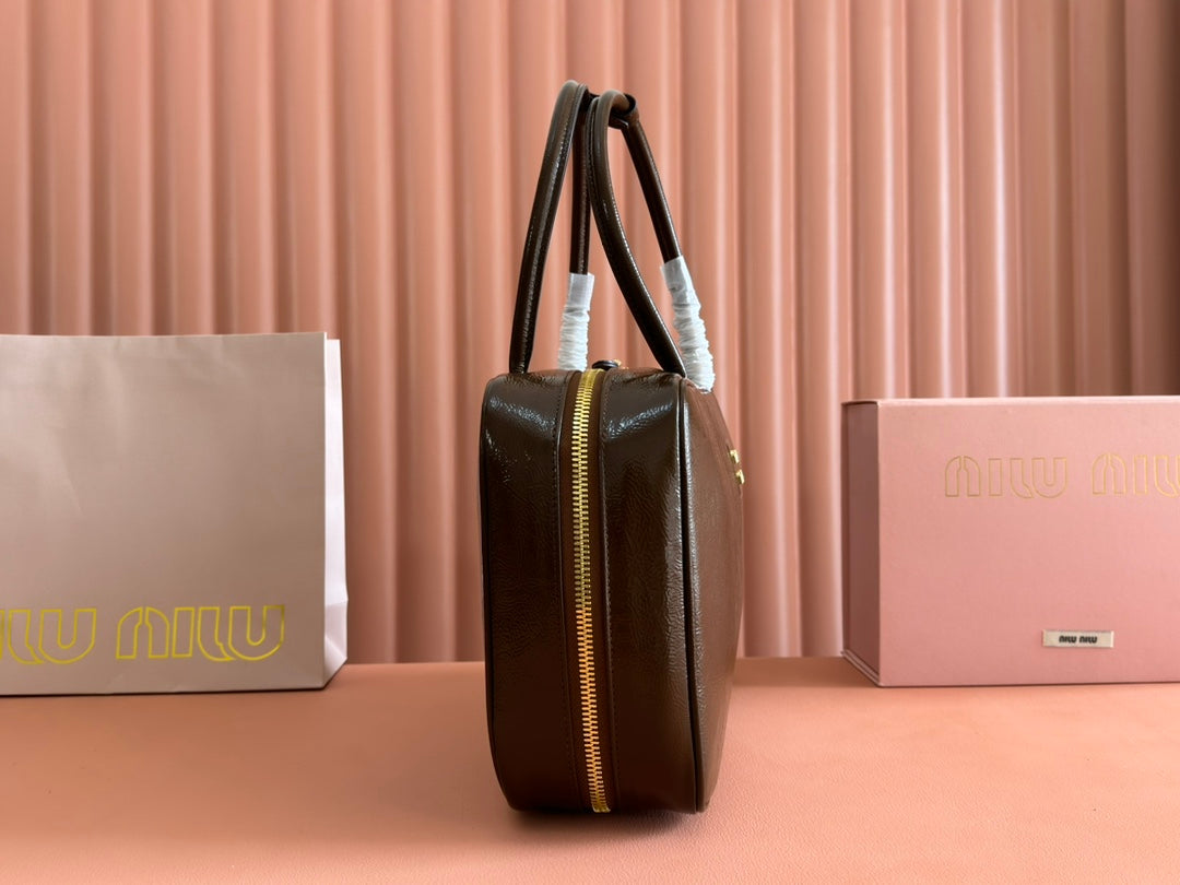 Miu Beau Top-Handle Bag 34cm Brown Leather 239698