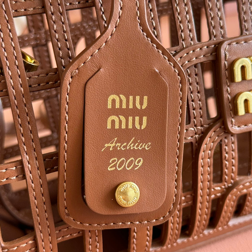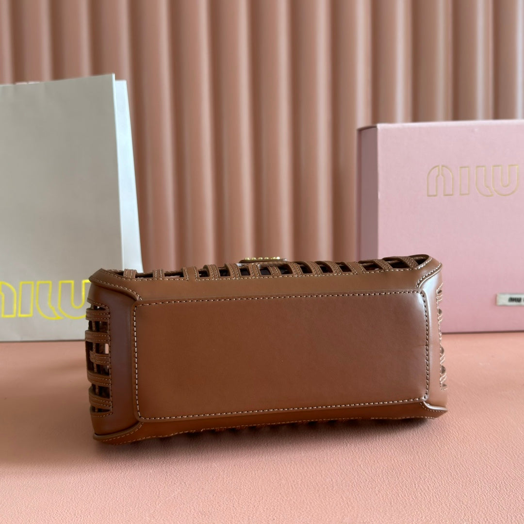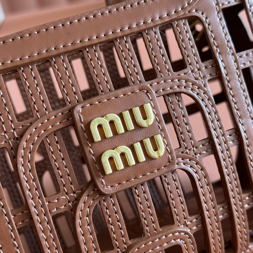 Miu Leather Basket Bag 24cm Brown Cowhide 255472