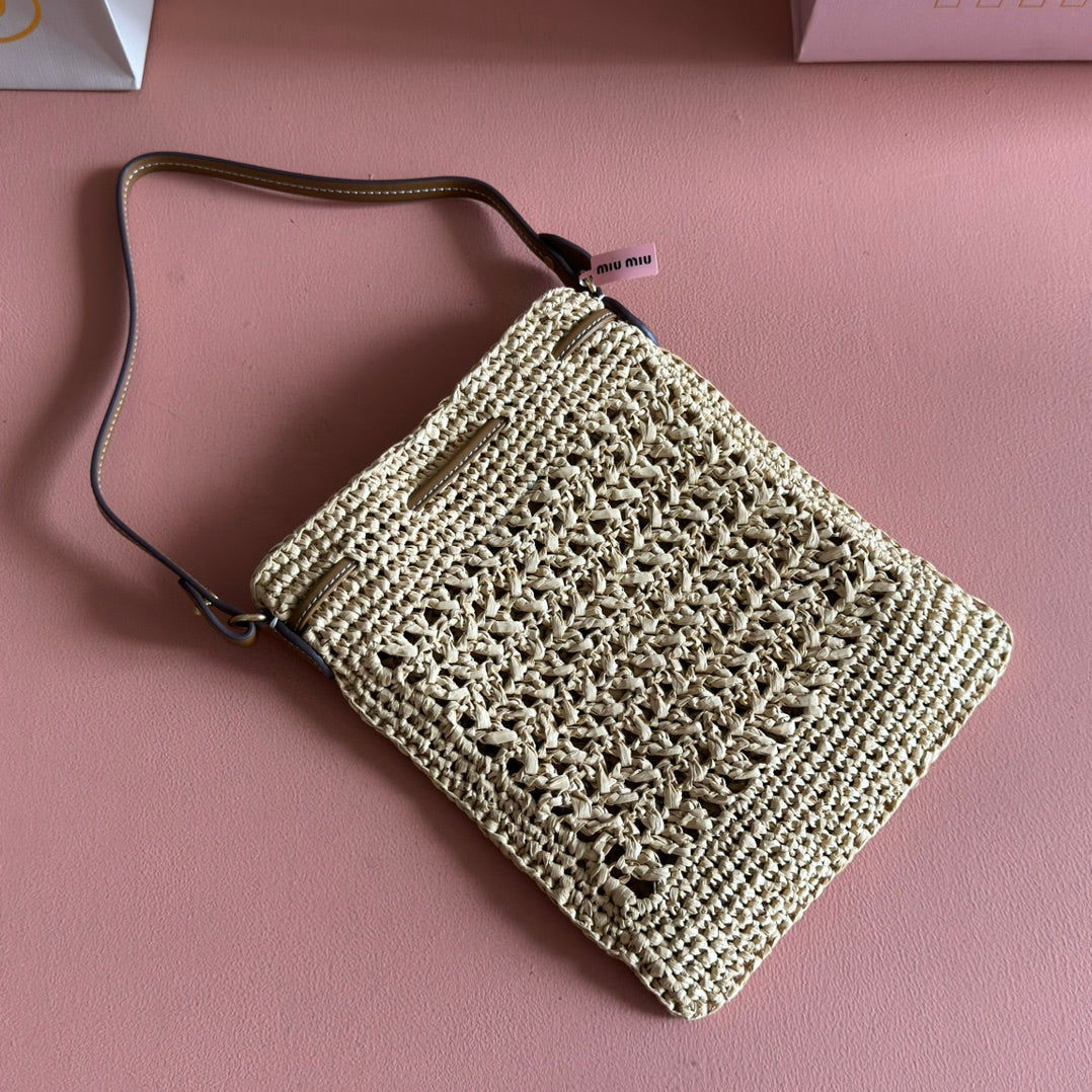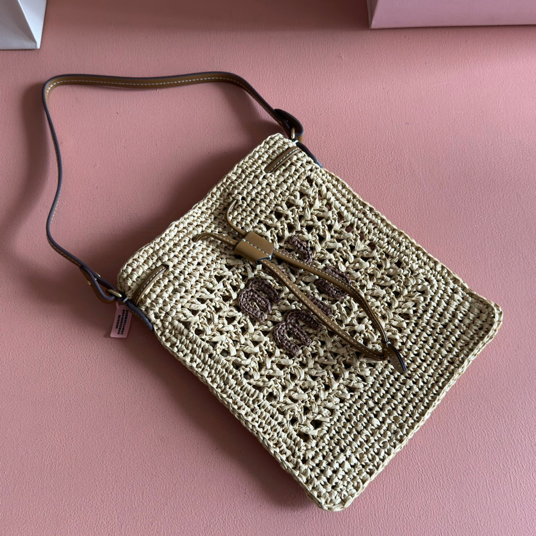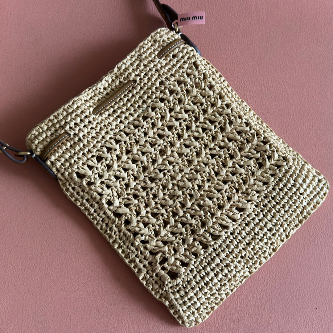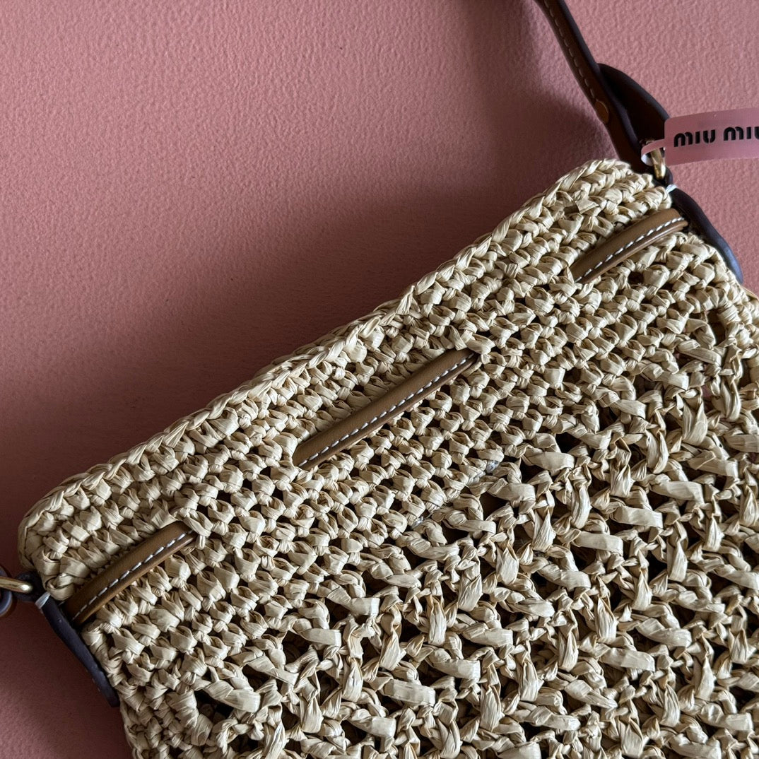 Miu Mini-Bag Beige Brown Woven Raffia 255459