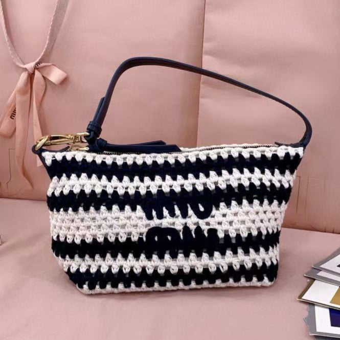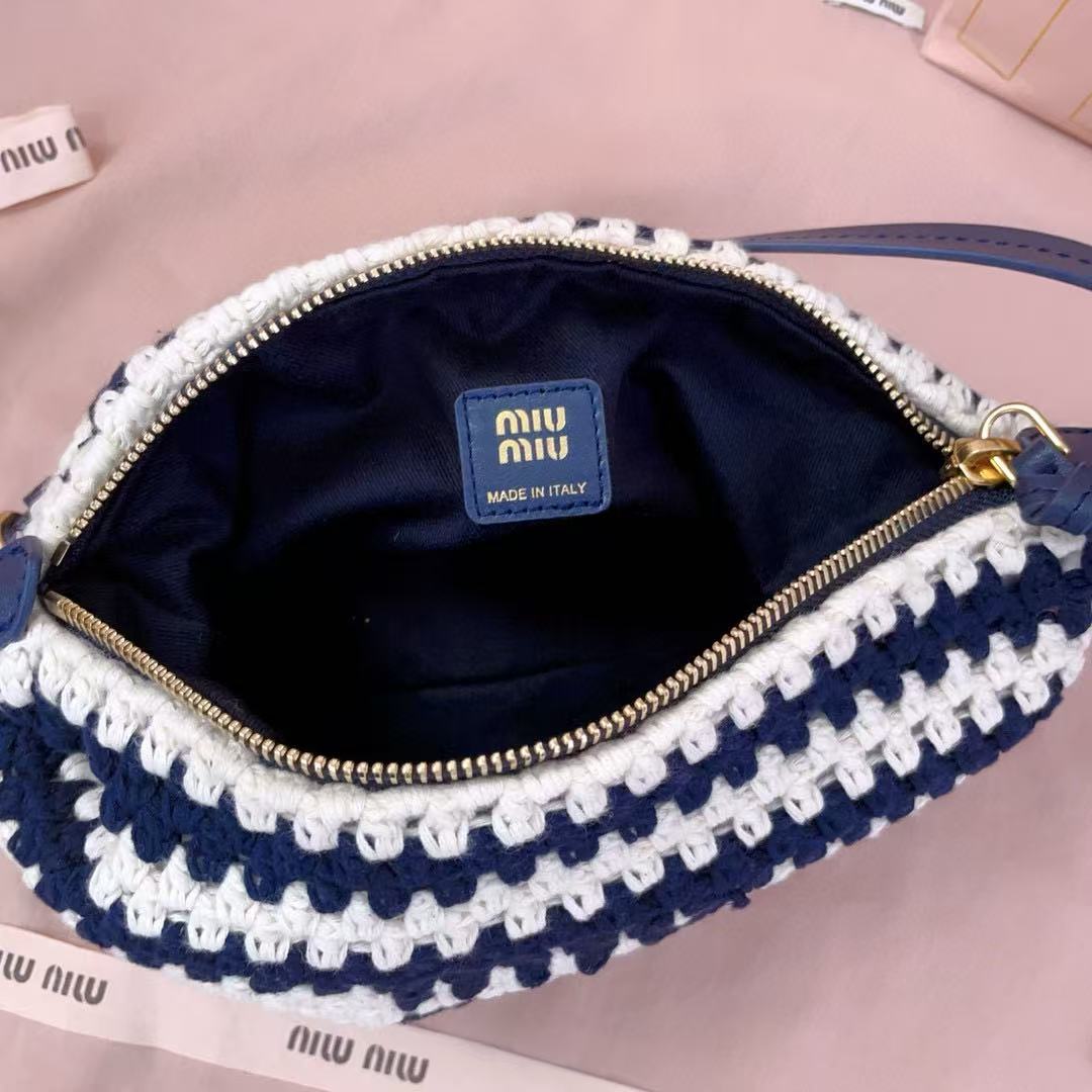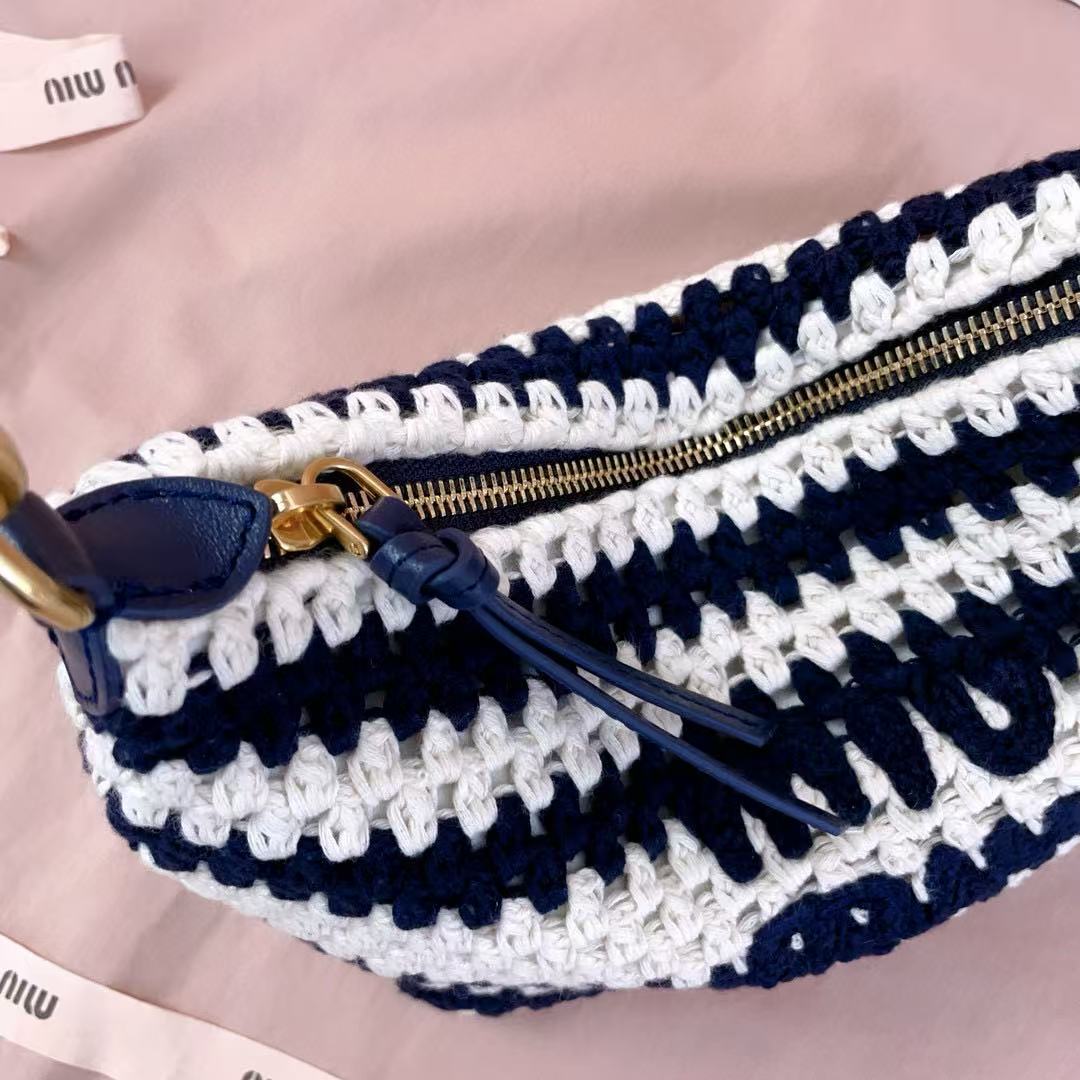 Miumiu Crochet Pouch Blue White Cotton