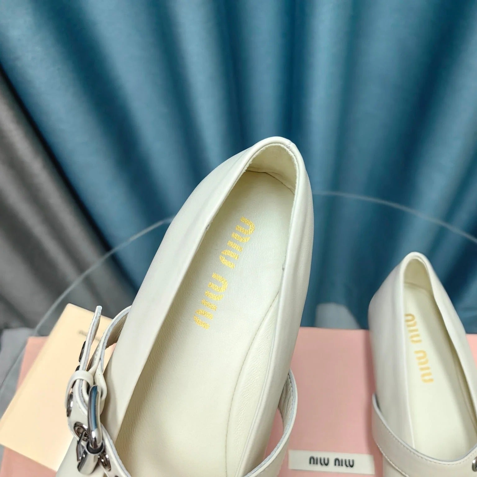 GHOST WHITE BALLET SHOES COWHIDE WITH BUTTON