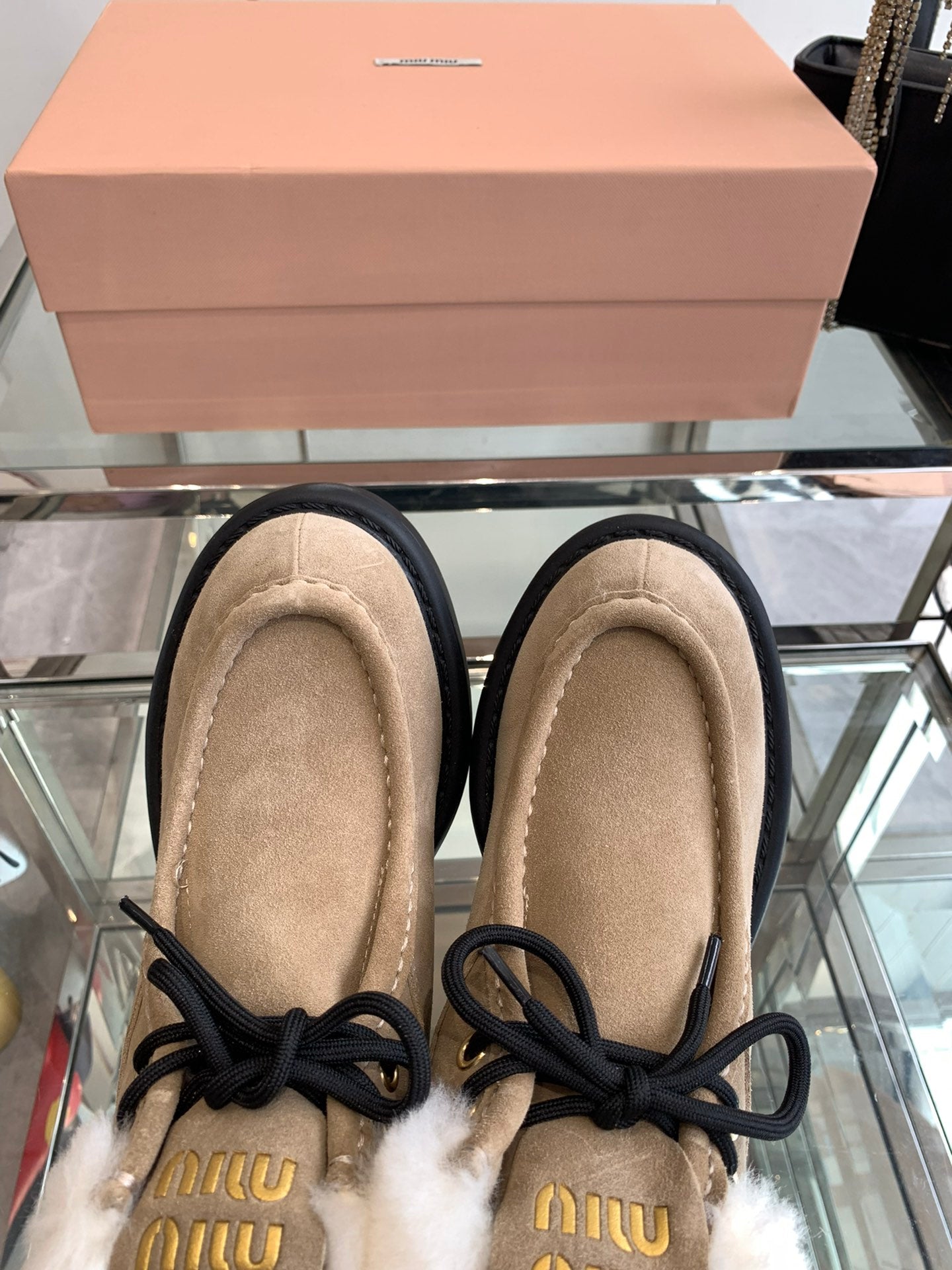 Miu Ankle Boots Khaki Brown Open-Hemmed Cowhide