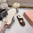 Miu Booties Dark Brown Suede Shearling-Lined with Fur Tassels 455927