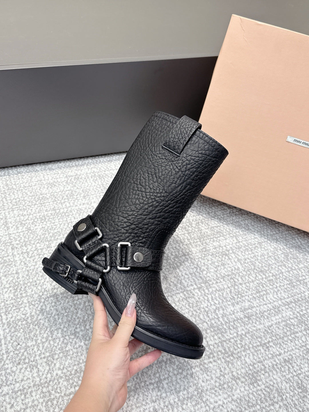 MIU MIU Martin boots Black Sheepskin 461850