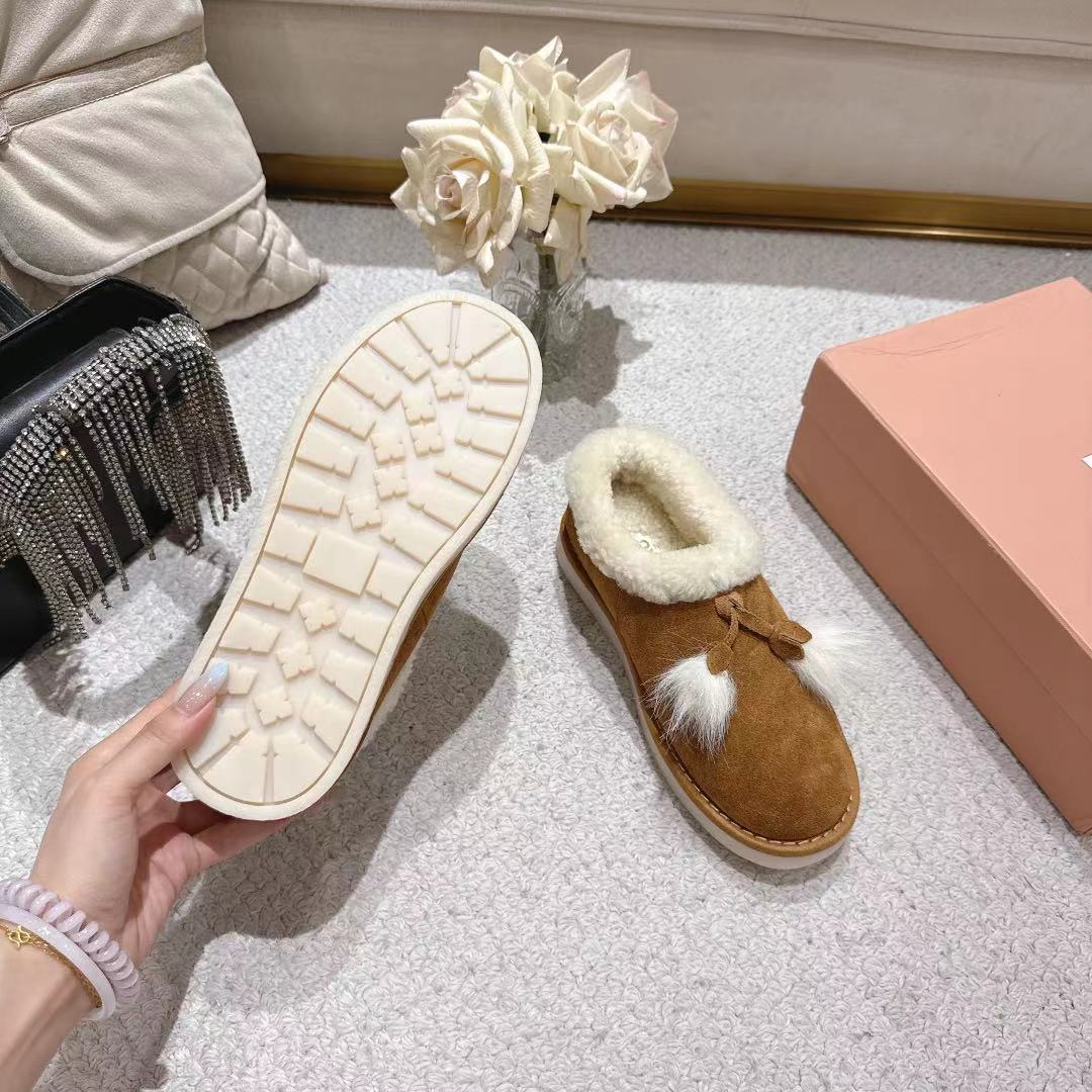 Miu Booties Brown Suede Shearling-Lined with Fur Tassels 455929