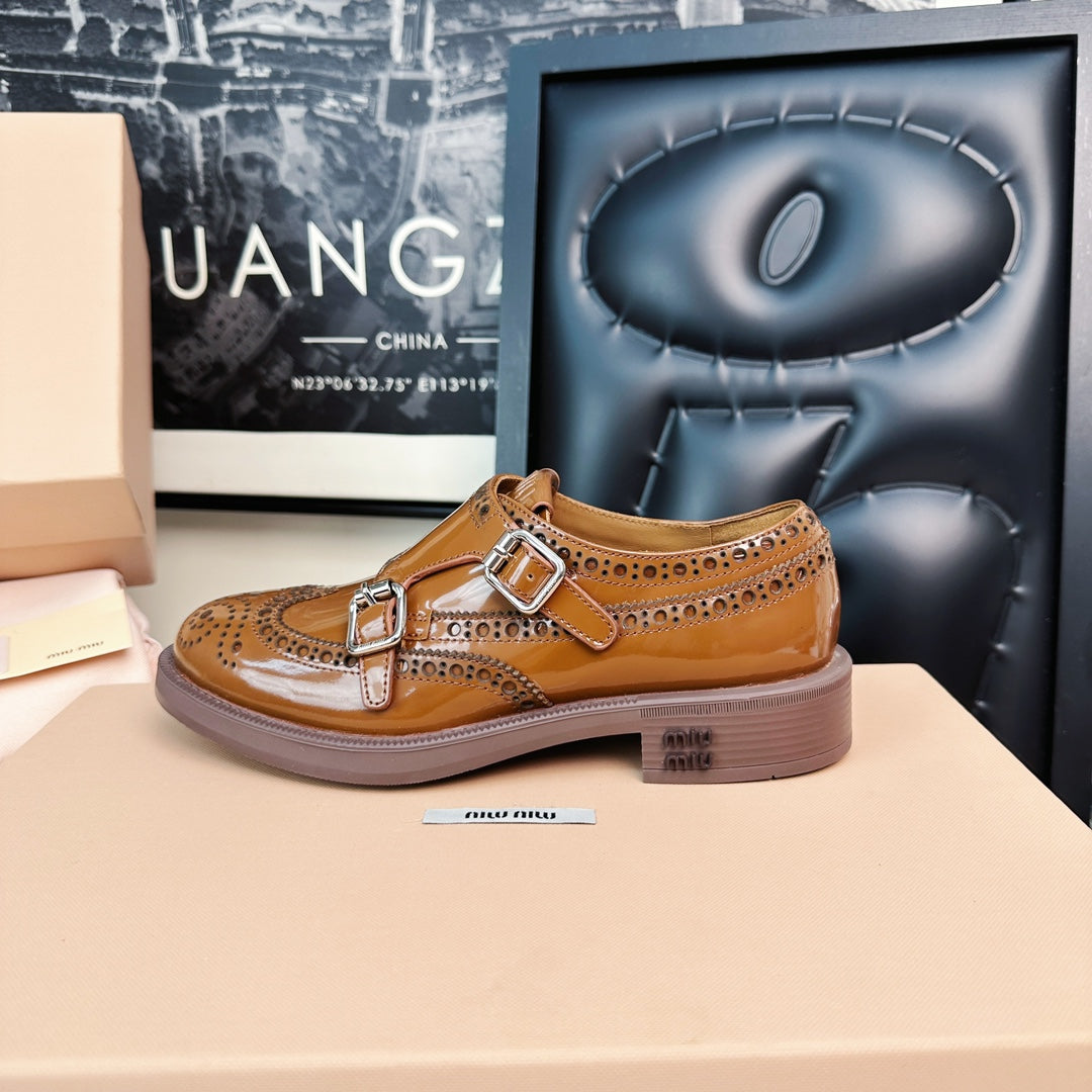 Miu Mary Jane Shoes Brown Patent Leather 445565