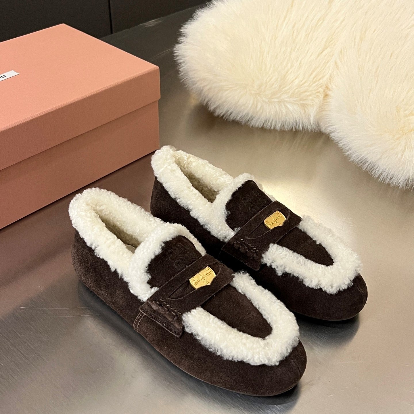 Miu Logo-Embossed Loafer Deep Neutral Suede Shearling 455916